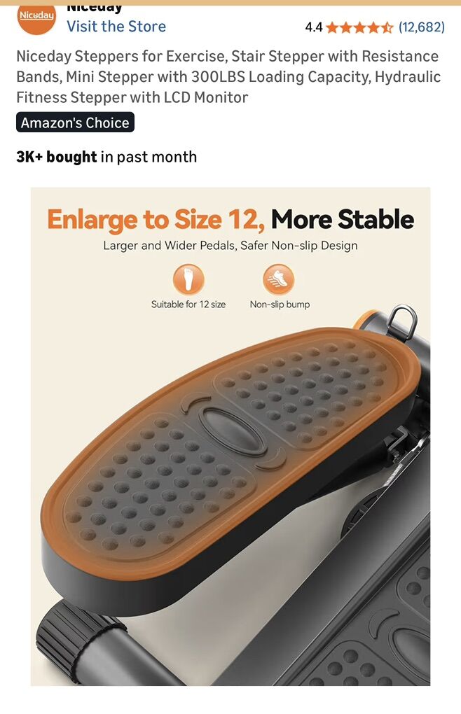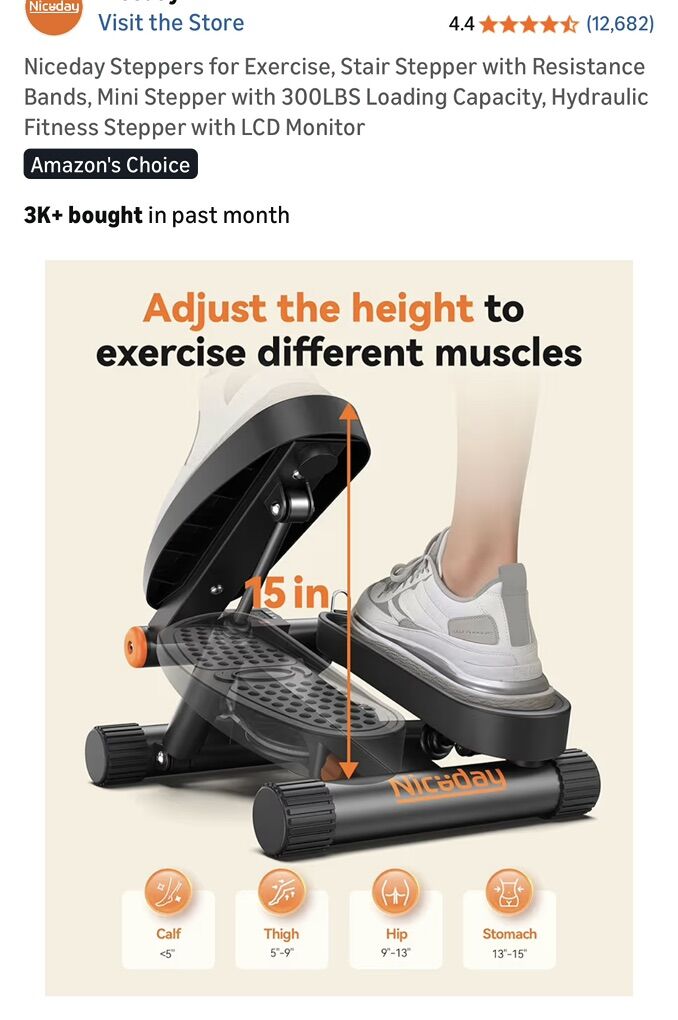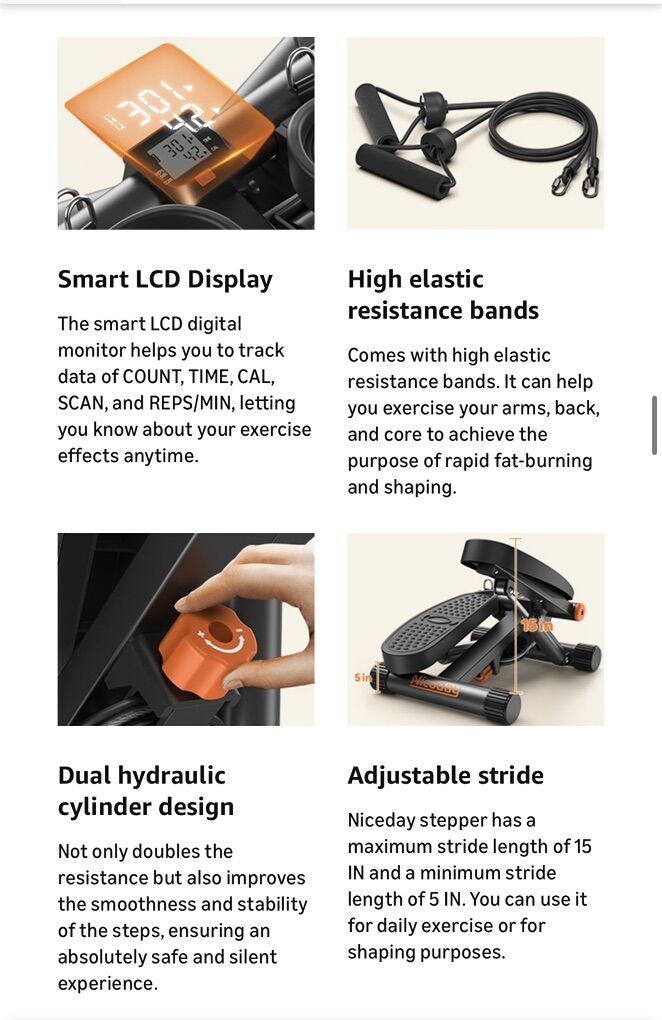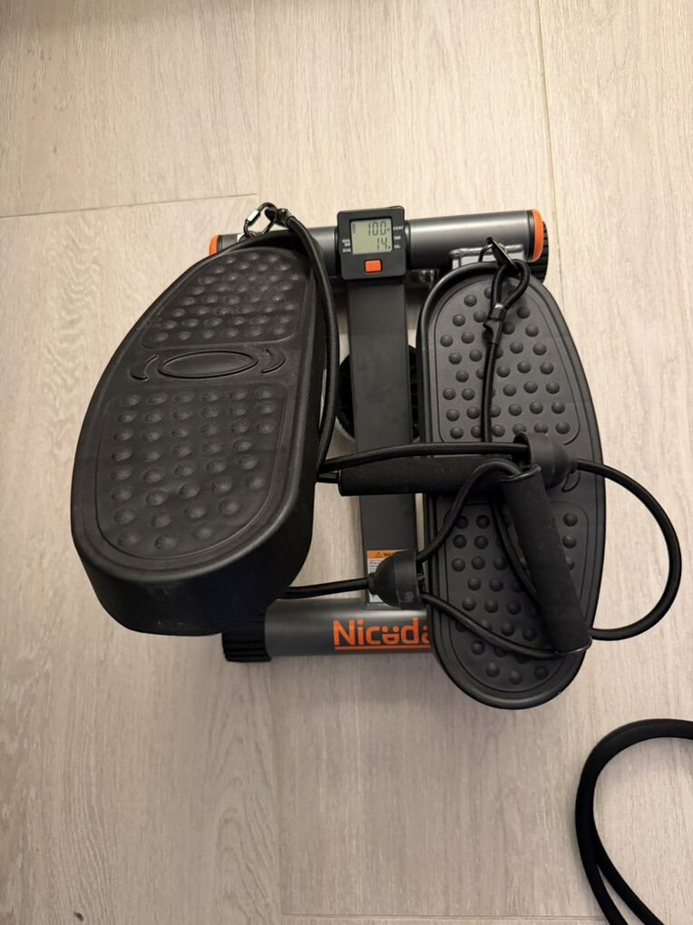 ZelleCondition: Used - Like New (or Excellent) Description: Get a full-body workout at home with this heavy-duty NiceDay Mini Stepper! It’s compact, easy to store, and built to last. Perfect for getting your steps in while watching TV or working at a standing desk. Features: High Weight Capacity: Solid steel construction supports up to 300 lbs. Adjustable Intensity: Features an easy-to-use adjustment knob to change the step height/resistance level. LCD Monitor: Tracks your step count, time, and calories burned. Full Body Workout: Includes removable resistance bands to tone your arms, chest, and shoulders while you step. Quiet & Smooth: Uses a hydraulic drive system for a smooth, low-impact workout that is easy on the knees. No Assembly Required: Ready to use right out of the box. Only used a few times and works perfectly. Clean and from a smoke-free home.