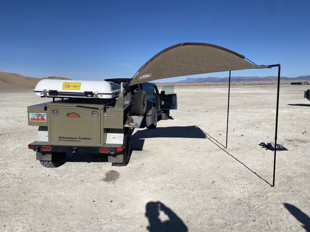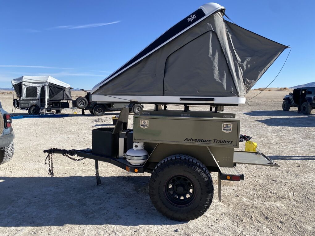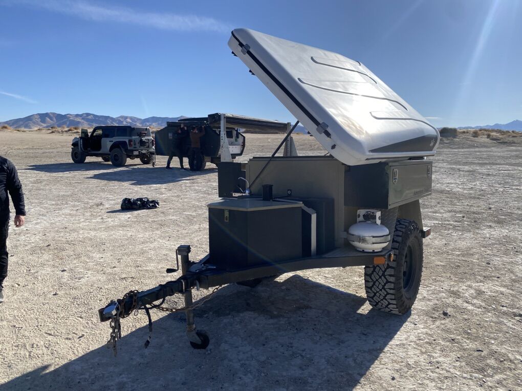 Equipped with a stove, propane tanks, jerry can holders, kitchen area and cutting board, sink and large water tank. TONS of storage and an Eezy-Awn tent that sells for close to 4K by itself.