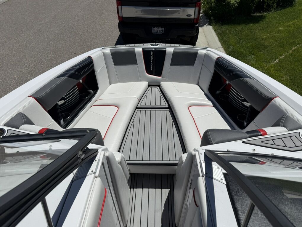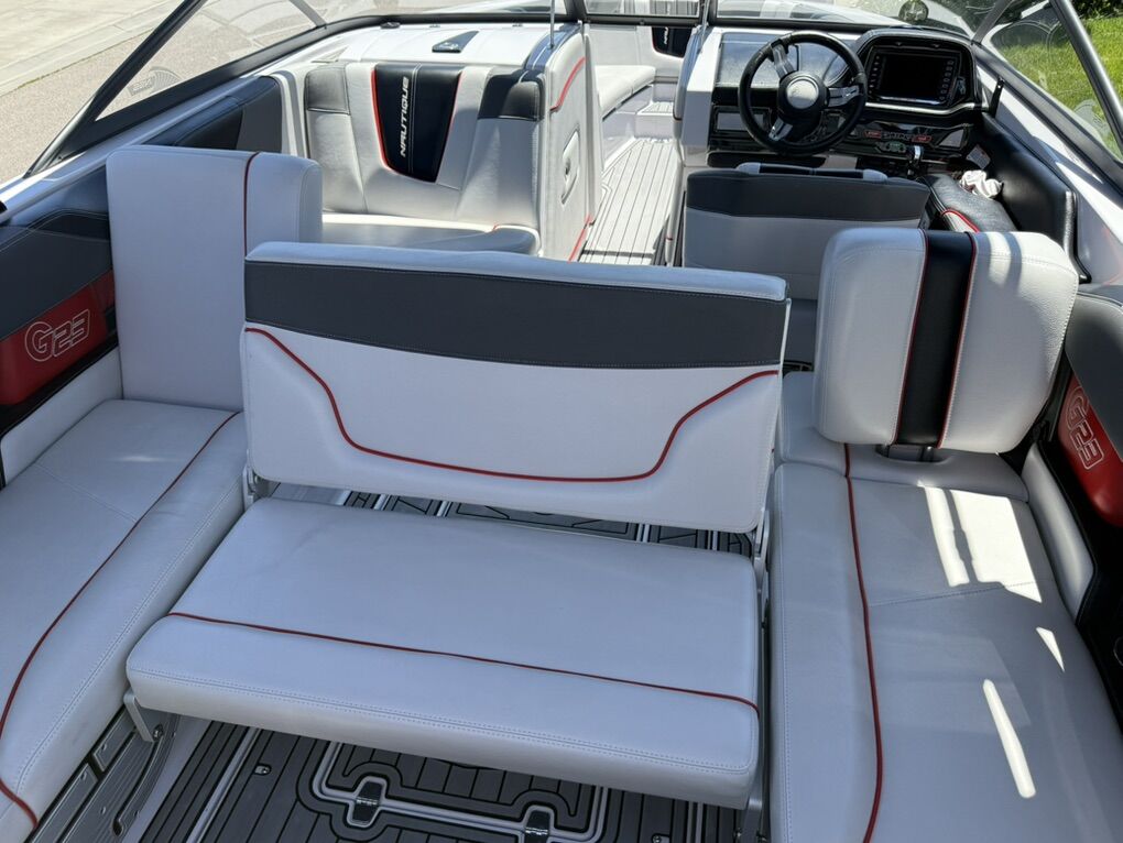 2015 Nautique G23 with the supercharged 550 hp motor. This is probably the cleanest used G, under $100k you’ll find. The interior is flawless, and the exterior looks like it’s 2 years old. Everything works great and the boat is fully loaded from the factory. Has a great sound system, and all the bells and whistles. Big Bimini for hot days, and tower light for a night time surf sesh. It has piggy back ballast in the lockers and bow to add an extra 1800 lbs of ballast. The wake is bigger than a 2025 paragon. Boat has about 515 hrs on it.