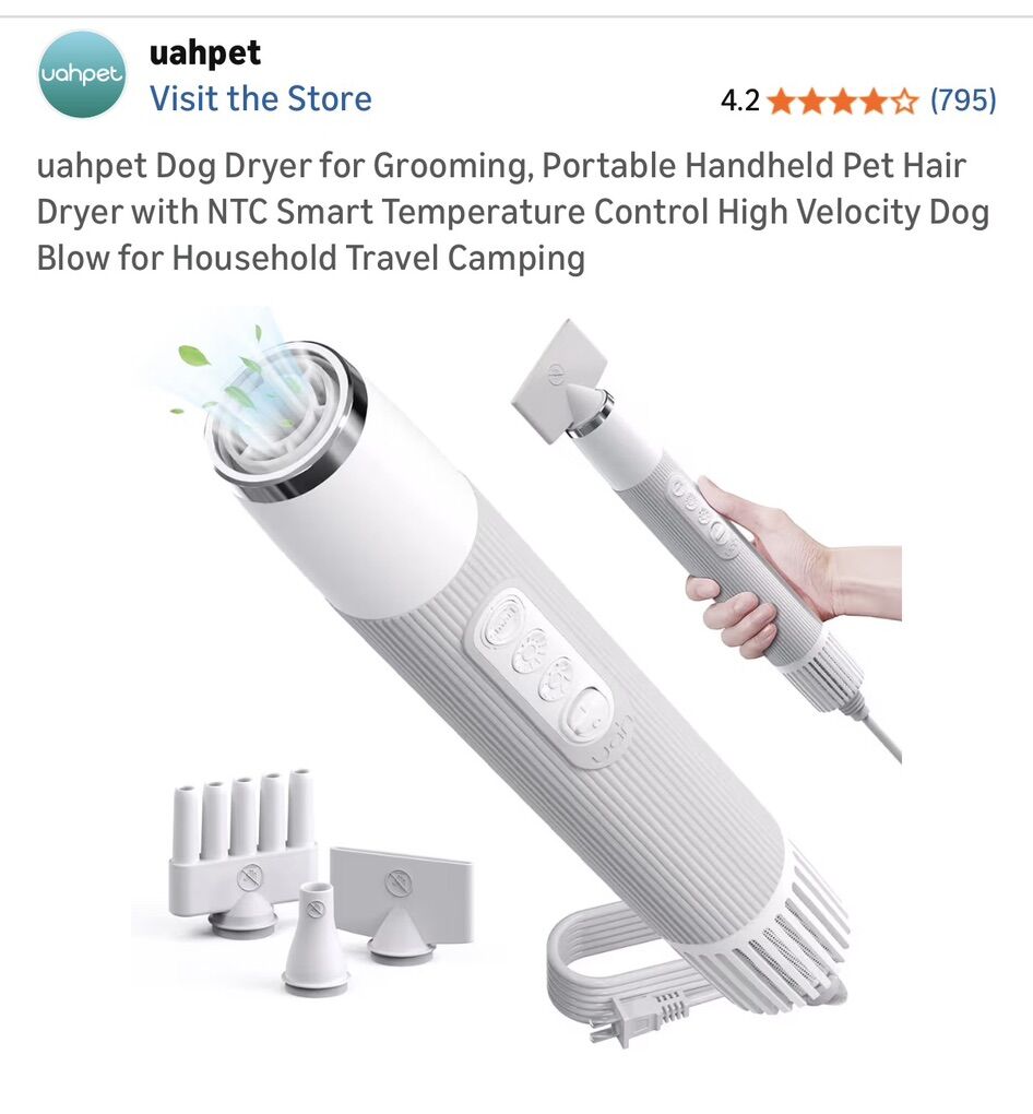 ZelleUltimate Pet Grooming Bundle: uahpet High-Velocity Dryer + 2-in-1 Brush Dryer Elevate your home grooming game with this high-performance pet drying duo! Both items have only been used a handful of times and are in excellent, like-new condition. Perfect for pet owners who want professional results without the salon price tag. What’s Included:\