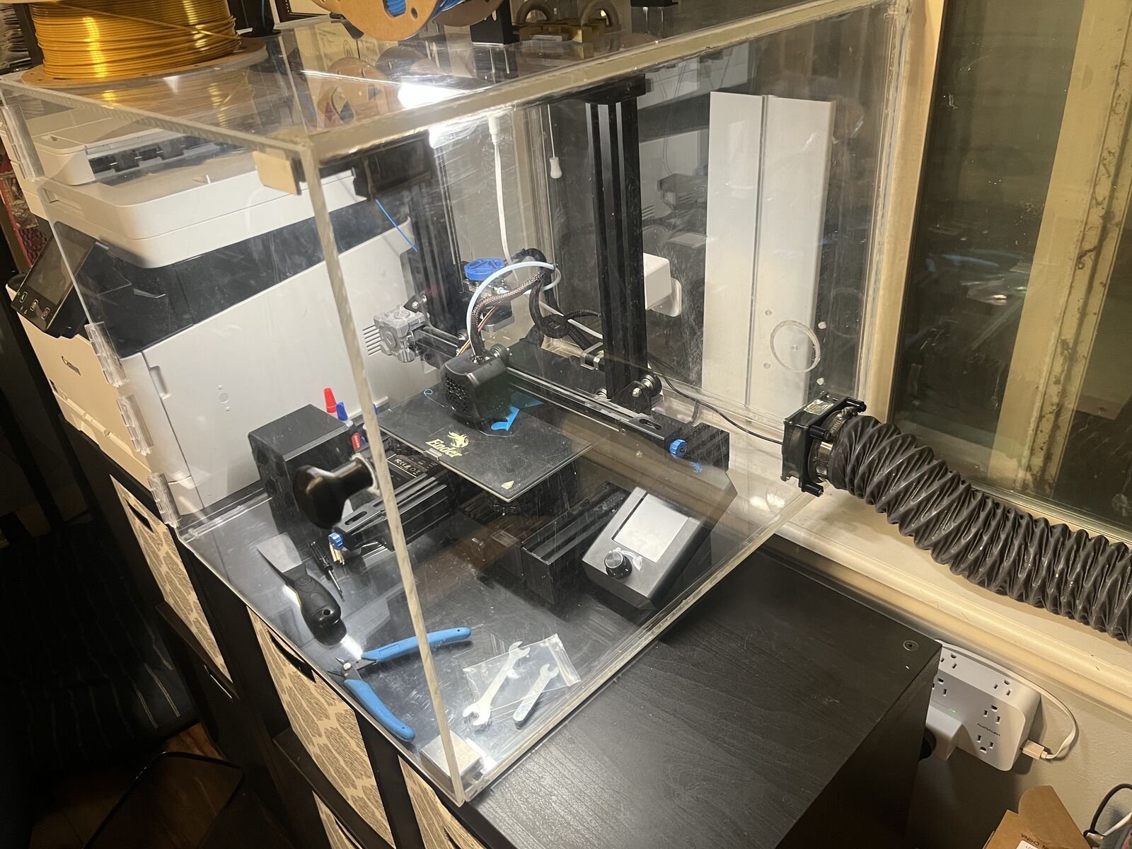 I also have a custom-made fiberglass enclosure (see pictures) that can be added to the purchase for an additional $55. Please note, the housing fan and exhaust hose are not included.
