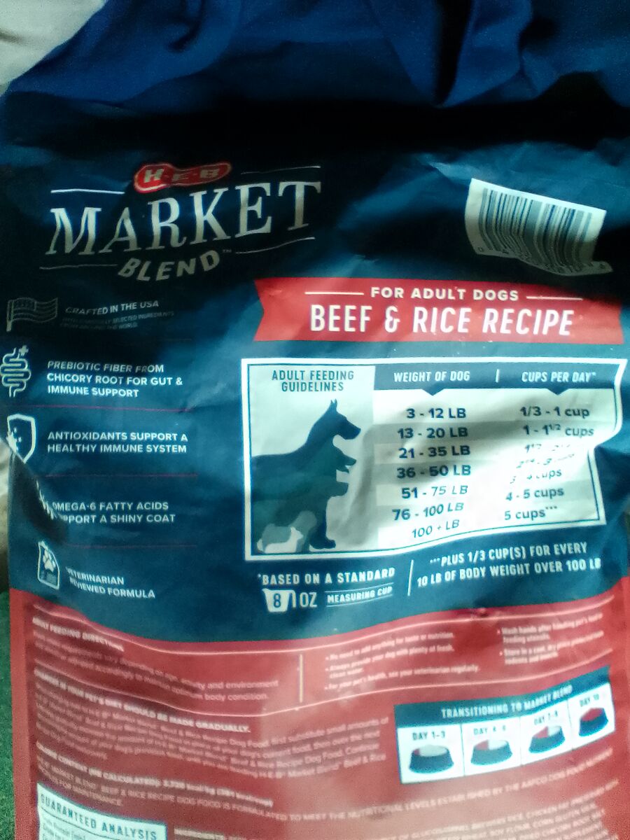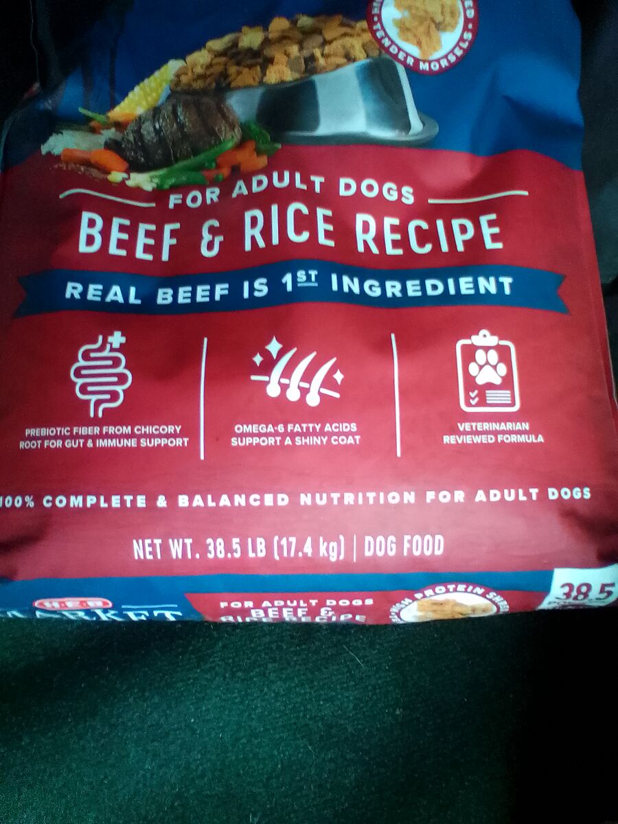 Venmo$30. Brand NEW never open H-E-B MARKET BLEND ADULT DOG FOOD 38.5 lbs. Never open can't use anymore. Normally $51.95 amazingly great deal. Real beef is first ingredient!!!