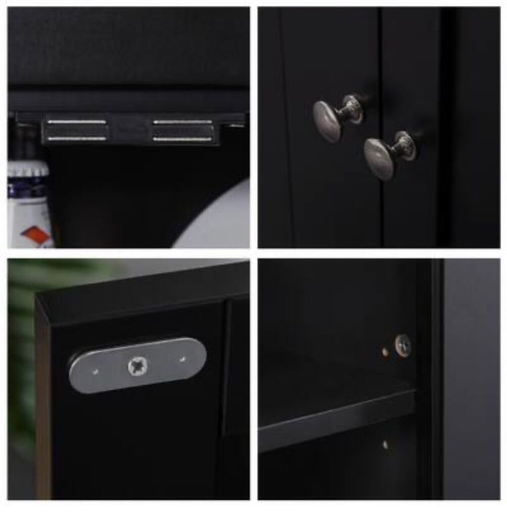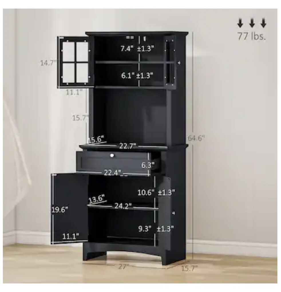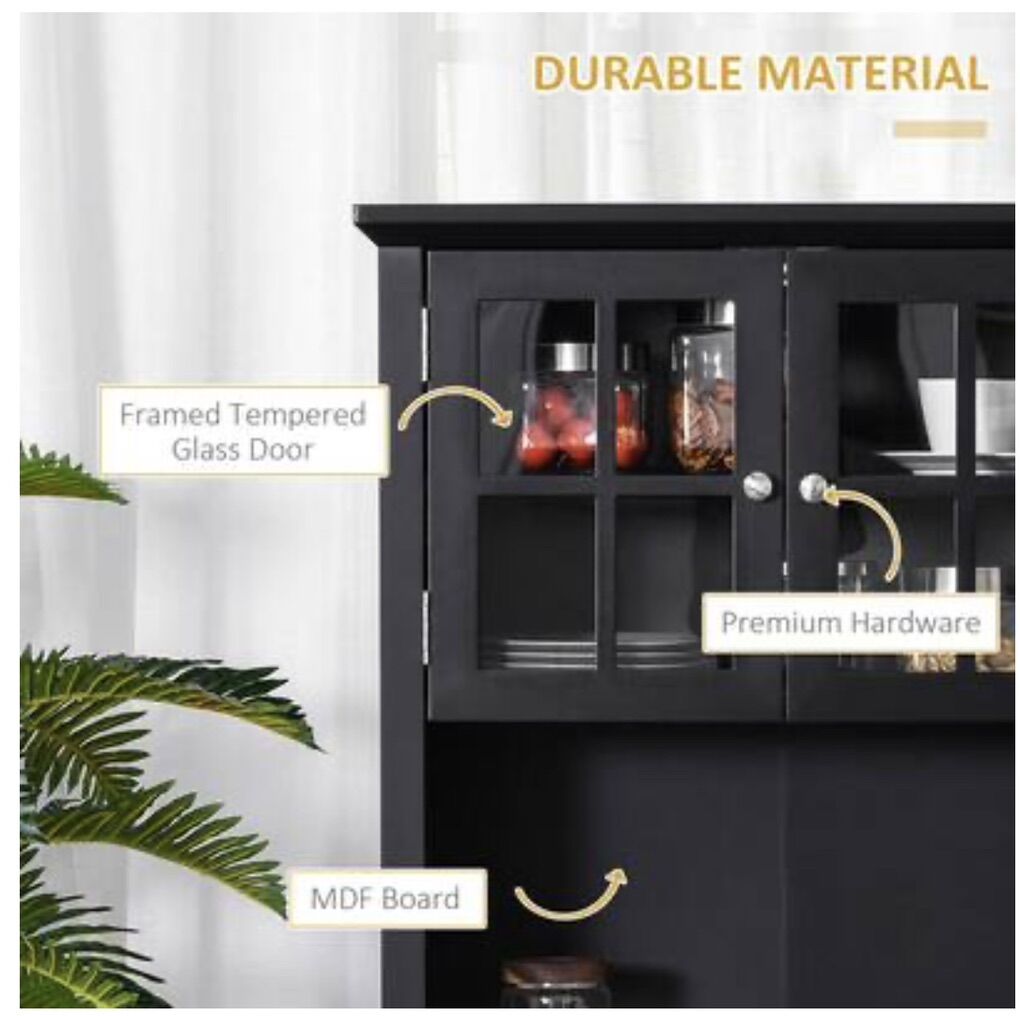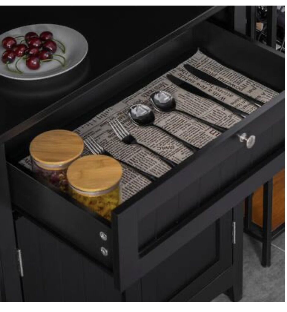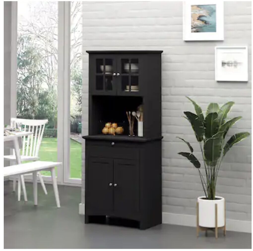 VenmoElegant buffet with hutch, kitchen, pantry storage cabinet with framed glass door drawer, and microwave. Space black in color. Brand new in the box Retail is $194 Cash preferred will accept Venmo Pick up in Roy
