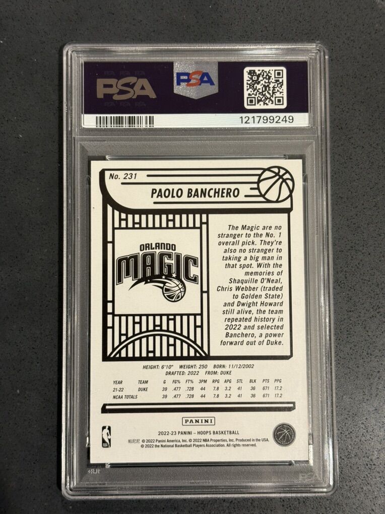 ApplePay2022-23 Panini NBA Hoops Magic Paolo Banchero #231 Silver Rookie /199 PSA 9