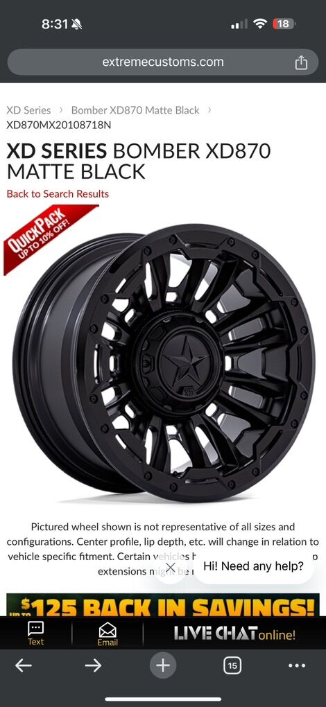 PayPal37x12.5x20 Toyo RT Trails on 20x10 with a -18 offset XD 870 Bomber wheels - 8x170 lug pattern to fit Ford Super duty and other 8 lug same pattern trucks.