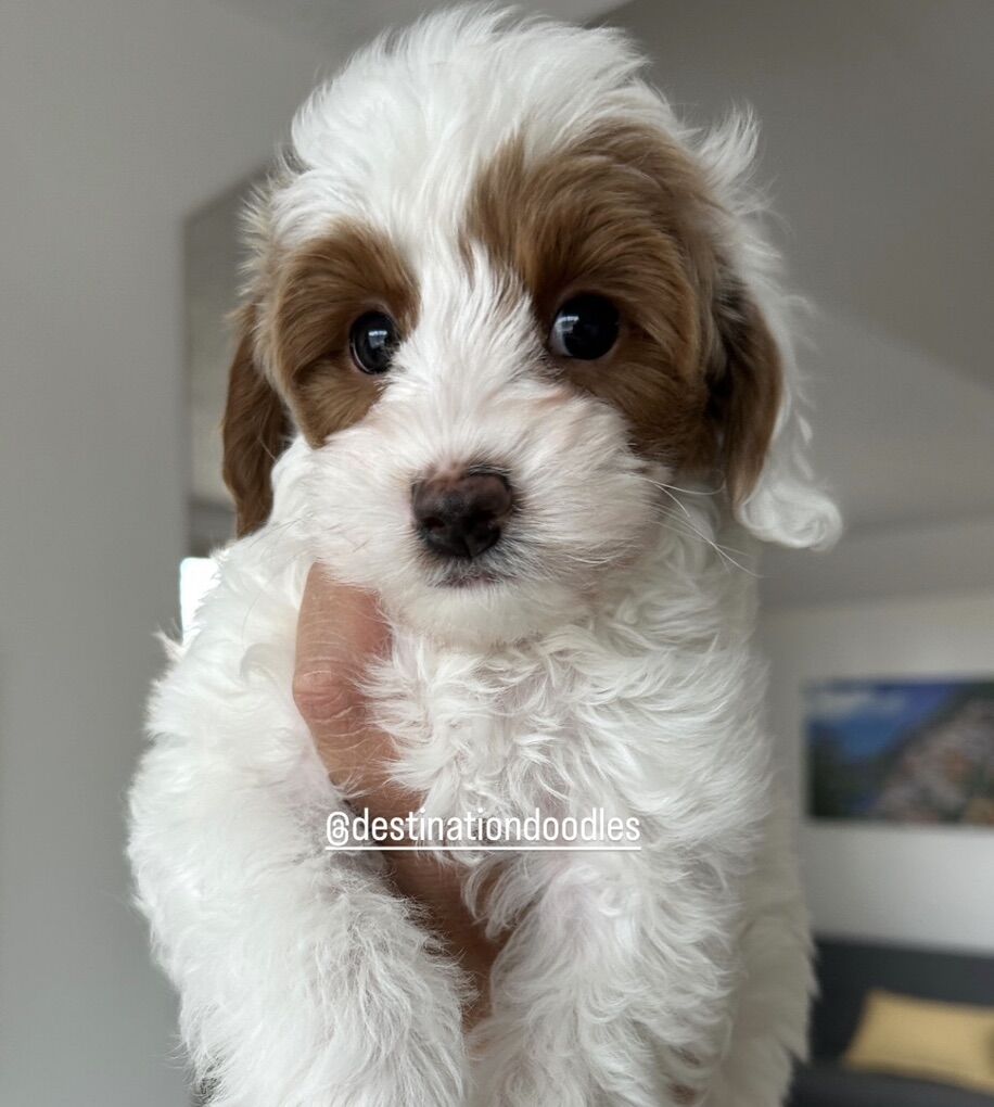 Want to see more of Little Caesar? We’ve included photos of him at various ages and haircuts as well as many of his cute puppies. Feel free to reach out—we’re happy to help you find the perfect match from our lineup of Cavapoos, Toy Poodles, and Goldendoodle studs.
