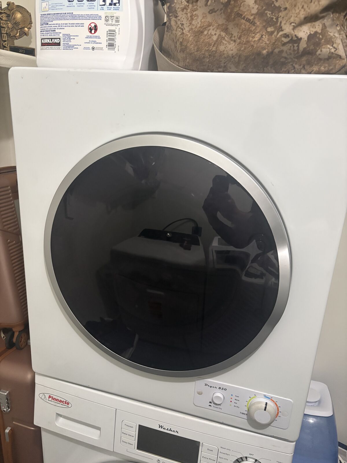 VenmoCompact pinnacle washer and dryer set we used these for a while when we moved into our first house but we upgraded the set works great it. we also have the water hose hook ups as well at the hose for the over flow for the water.