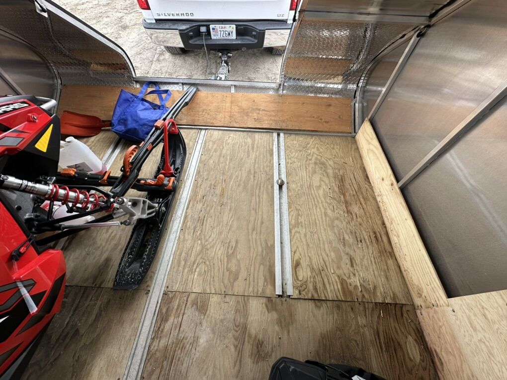 ApplePay2017 Triton 2 place Enclosed Snowmobile Trailer. Super light and easy to tow with pretty much any vehicle. I believe it only weights 900lbs empty. I’ve fit 3 155 sleds in by backing the last one in the middle. Got hooks and trays for gear and oil. Just greased the wheel bearing in the last summer. Comes with a spare tire. A few small dings but overall in great condition. Locking front 48x48 access door. Interior is 67” tall, 8.5’ wide and 12’ long. Superclamps not included. Title in hand.