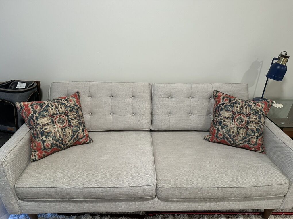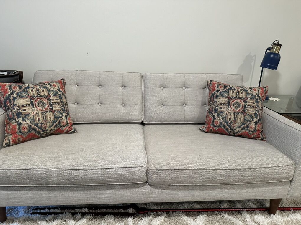 VenmoVery sad to part with this couch! She has served me very well. Purchased in 2020, so she is about six years old. Has typical wear and tear on armrests and new legs! Puchased for $1,499.