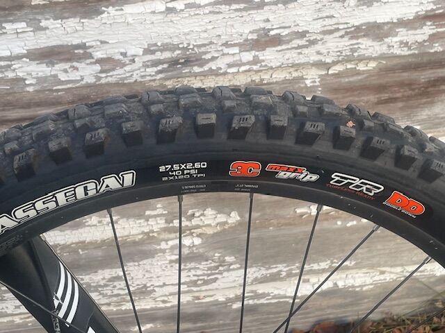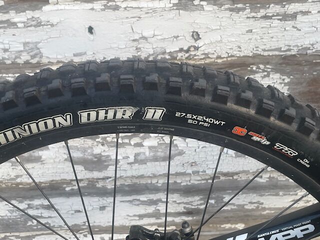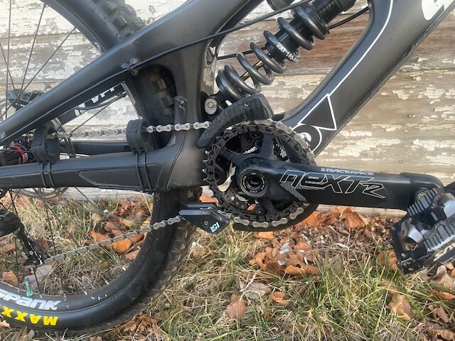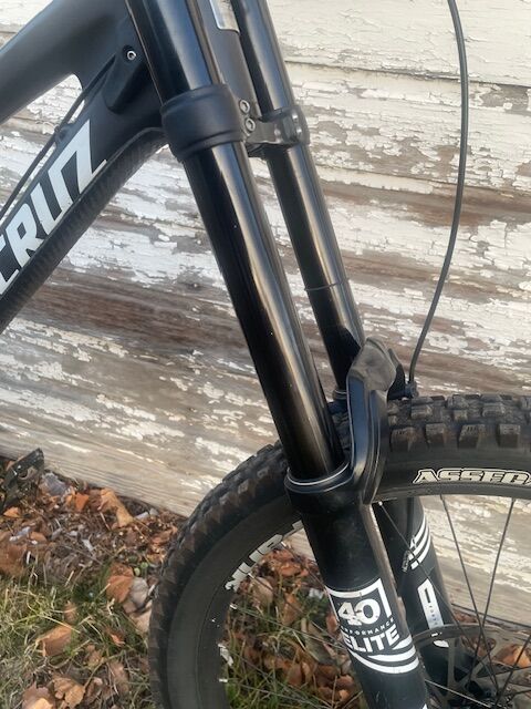 Frame: Santa Cruz V10 XXL with Carbon CC rear triangle Rear Shock: Fox DHX w/EXT 600lb spring (incl.) Can switch spring for no charge. Fork: Fox 40 with titanium coil spring - Stancions are perfect no blemishes. Stem: Santa Cruz V10 Direct Mount Handlebar: Spank Spoon 35 x 60mm Headset: Works Reach Adjust Wheels: Front Hub Novatec D641 Front Rim Spank 350 Vibrocore Front Tire NEW MAXXIS Assegai 2.6 w/DD casing Rear Hub Novatec DH42 Rear Rim Spank 350 Vibrocore Rear Tire NEW MAXXIS DHR II 2.4 w/DH casing Cassette Sram GX 7 speed Brakes: Front Guide RE 225mm Rotor Rear Guide RE 200mm Rotor Shifter Sram GX Derailleur Sram GX DH 7-speed BB Spindle: RaceFace Cinch Crank: RaceFace Next R Chainring: RaceFace 36I Bottom Bracket: Rotor Chain: Sram PC-X1 Chain Guide: e*thirteen LG1+ new bash guard and roller wheel Pedals: Saint Clip-in Seat: NEW SDG Belair Seatpost: Thompson or Answer Carbon Grips: NEW ODI Rogue
