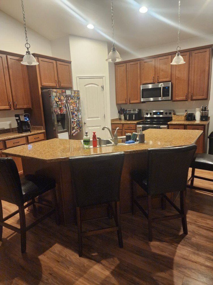 We are remodeling our kitchen and bathrooms. We would like to sell all cabinets and appliances in the kitchen, counters/sinks/lights ftom bathrooms. Make an offer. Very clean house.