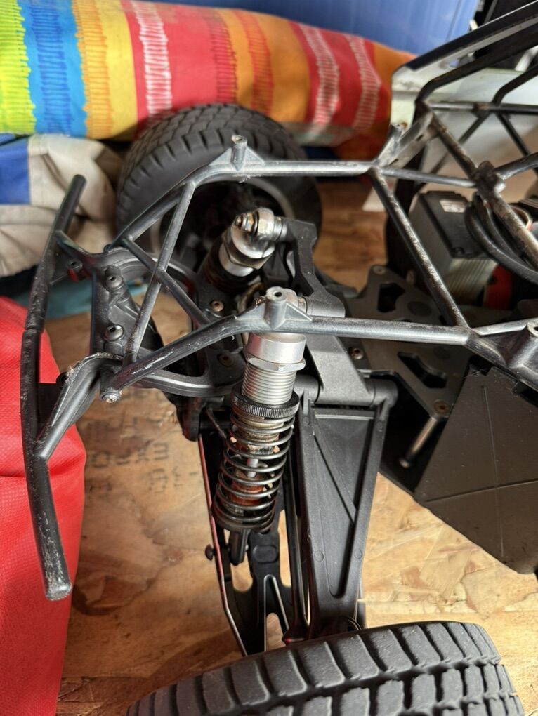 Super cool Losi Super Baja Rey! Body is a bit rough and one spot on the cage is broken but doesn’t affect anything. Comes with everything to run it besides a battery. The battery went bad and I just never got a new one and have now lost interest in it. Has an upgraded motor and other electronics. Also has aftermarket arms. Open to trades let me know what you have.