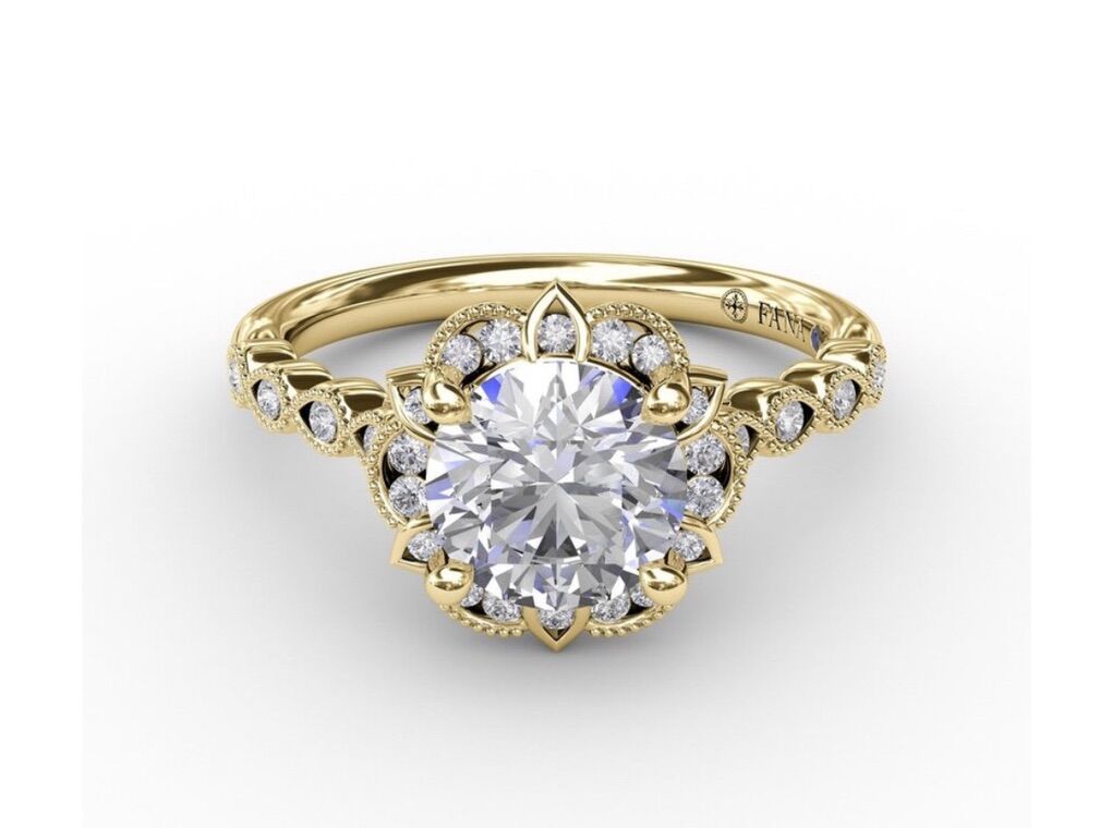 VenmoNew engagement ring. Round 0.71 carat lab-grown diamond with floral halo and milgrain details. Size 6.5. Barely worn, we decide to go with a different style! IGI certified.