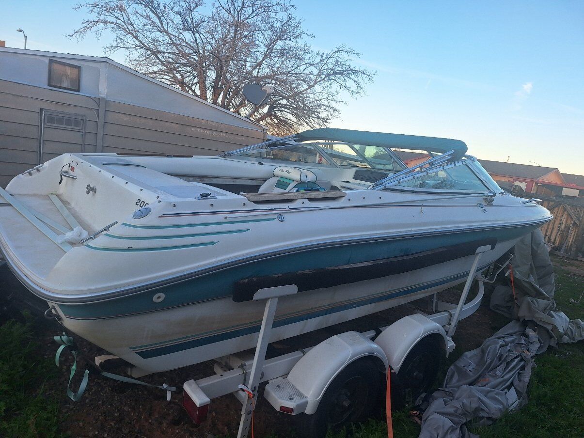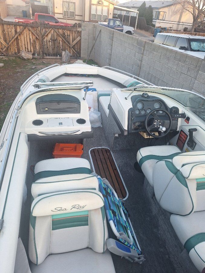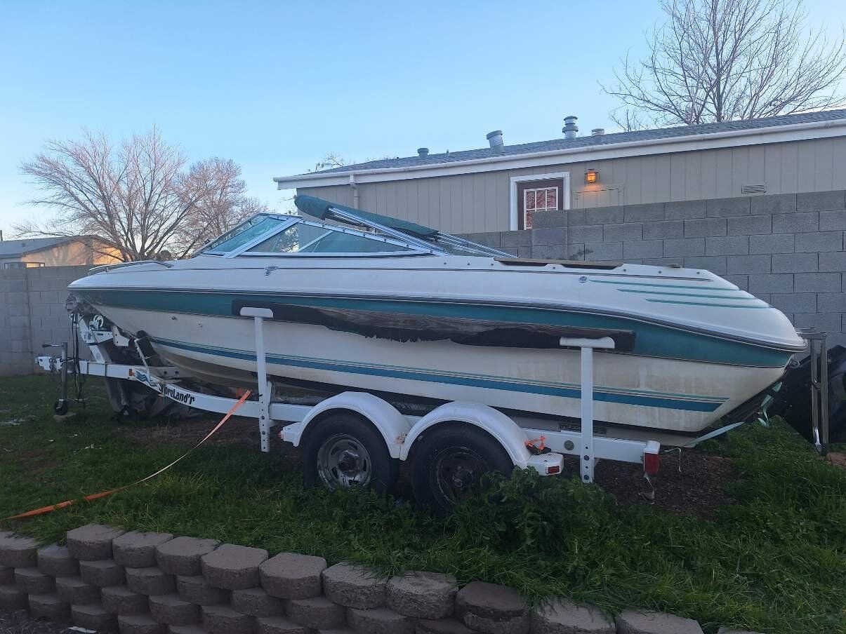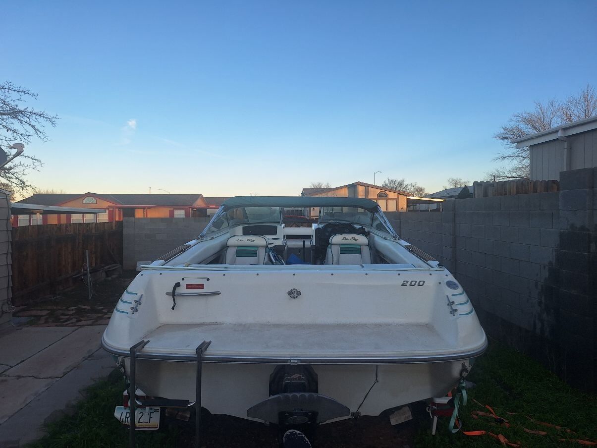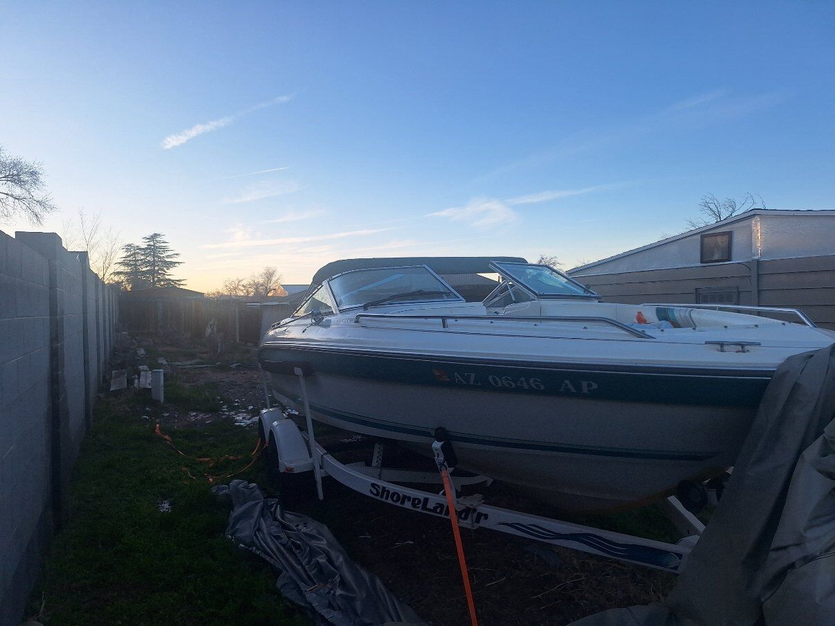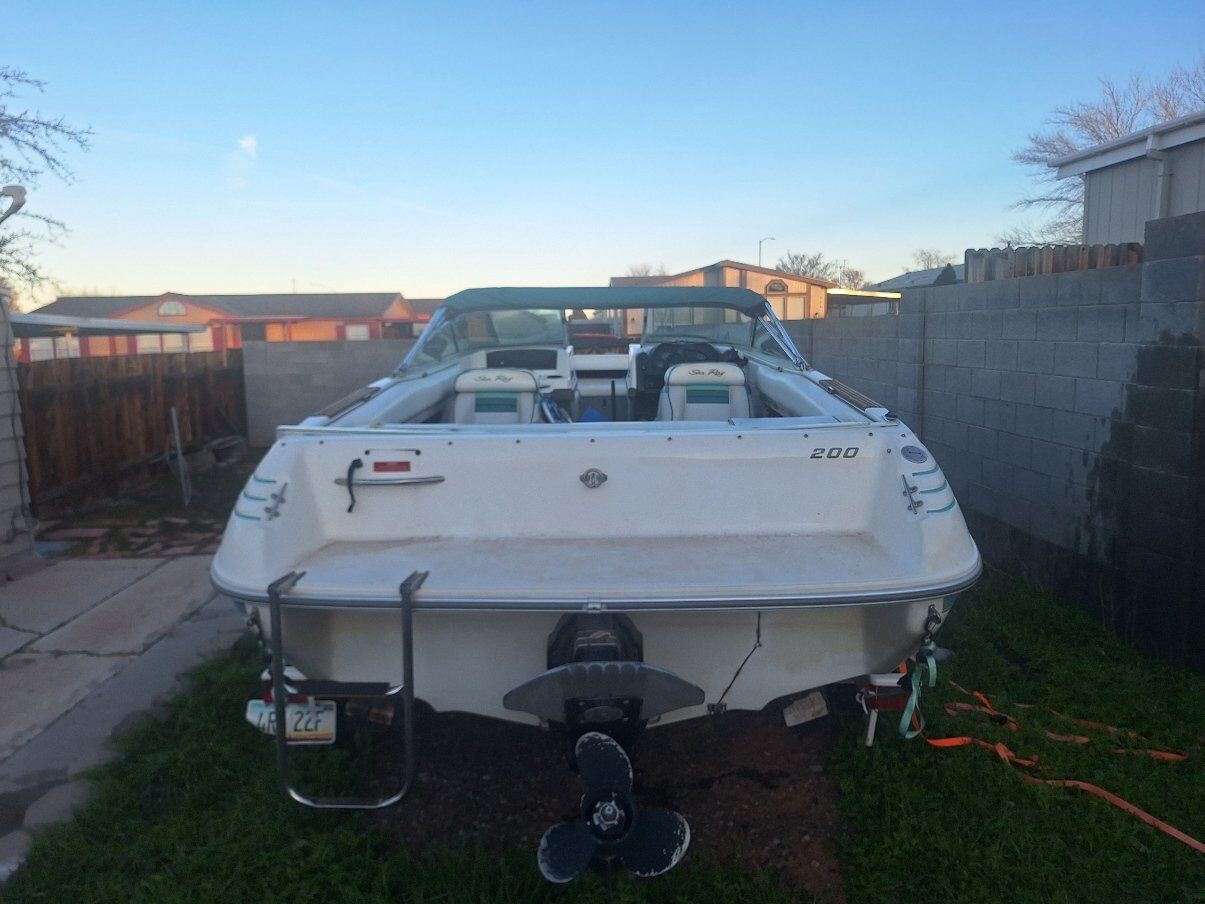 OPEN TO TRADES 1992 Sea Ray 200 bow rider. Has the 4.3 alpha one. It has two covers, two bimini tops and a zip up enclosure. The seats lay down into beds. It sits on a 2001 Shorelandr tandem axle trailer. Tires are about 4 years old, maybe 300 miles on them from towing out to the lake. Engine has around 600 hours on it. Battery is new. Will come with spare prop, skis, knee board, rope, life jackets and a tube. The bunk boards on the trailer need to either be removed or replaced ($42 for both). I AM OPEN TO TRADES. I can show the boat anytime after 3:30 p.m during the week or anytime during the weekend. More pictures available upon request. LOCATED IN PAGE, AZ