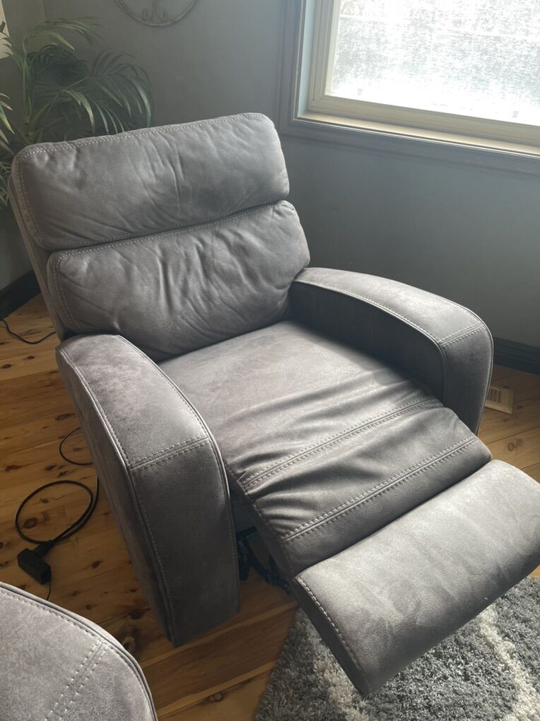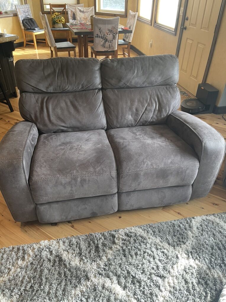 VenmoReclining couch, reclining love seat, recliner. All electric powered. New condition. Gray microfiber material. Buyer to pick up.