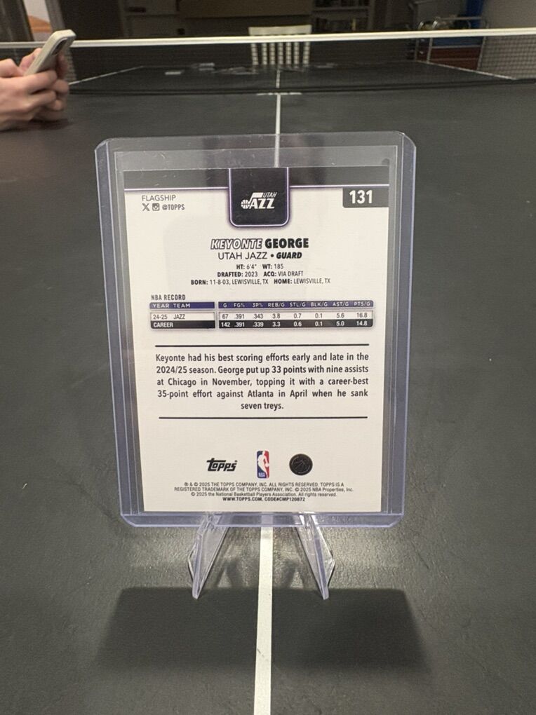 The product is a 2025-26 Topps sports trading card featuring NBA player Keyonte George from the Utah Jazz. The card is autographed by George and belongs to the Diamante parallel/variety set. This rare and collectible card is ungraded and in excellent condition, making it a valuable addition to any basketball card collection. Topps is the manufacturer behind this exclusive item, known for producing high-quality sports trading cards for avid collectors and fans alike. EBAY LINK