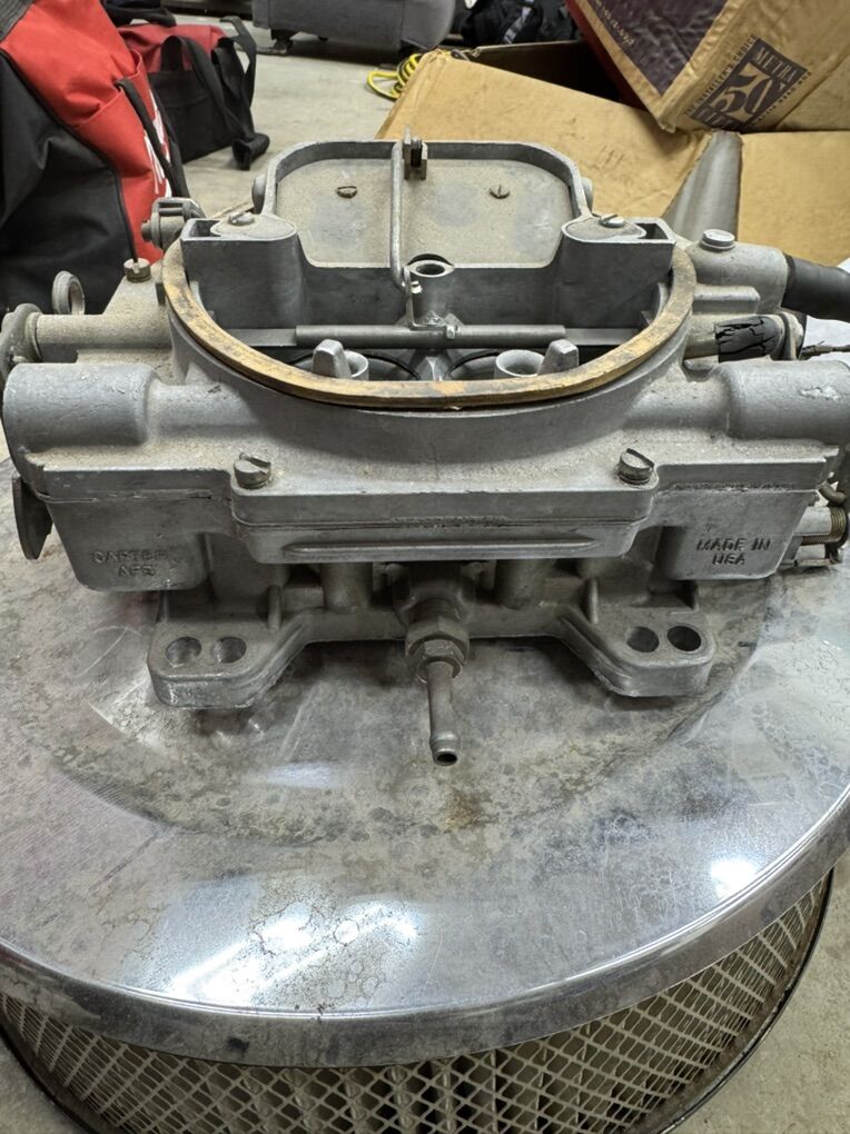 Carter AFB carb. 625 cfm. Chevy linkage. It’s been sitting in a box for a while, it worked well last time it was used. Same design as an edelbrock carburetor and most part interchange.
