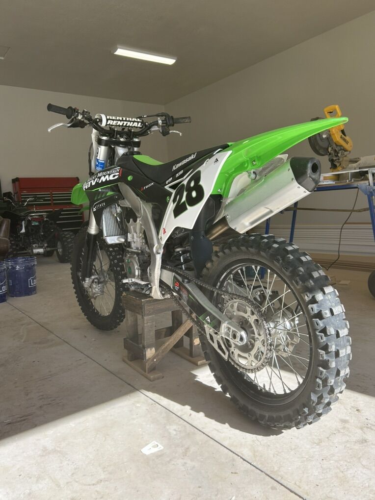 Super clean bike! This bike has hardly been ridden. I bought it from my uncle who rode it 2or 3 times a year and I have only taken it out twice. Very low hours and never seen the track just been out west for desert rides. Ready to rip and a good deal for basically a brand new bike.