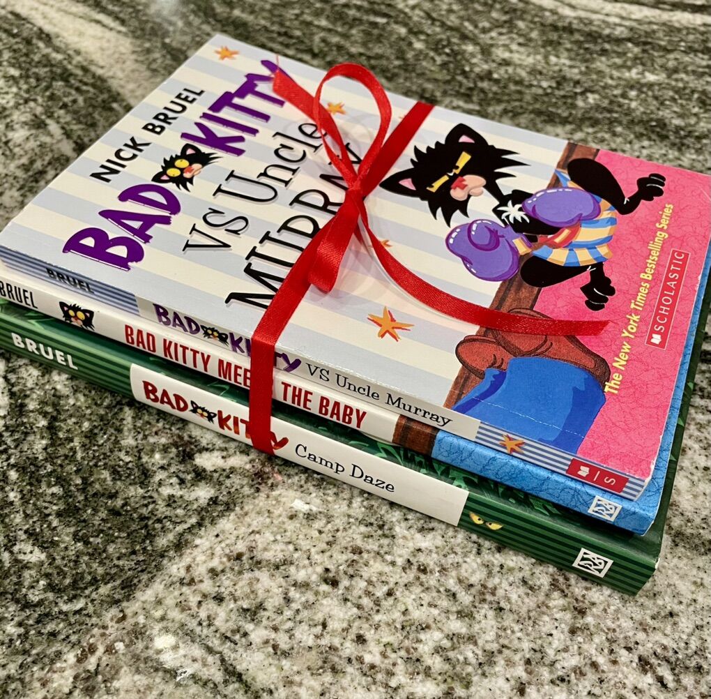 ApplePayFun set of 3 Bad Kitty books by Nick Bruel. Includes 'Bad Kitty vs Uncle Murray', 'Bad Kitty Camp Daze', and 'Bad Kitty Meets the Baby'. Great for young readers. Will ship! Two are paperback, one is hardcover.