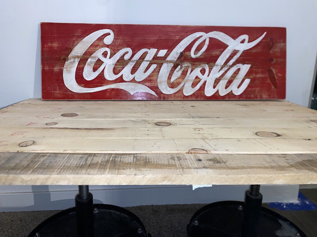 Coca-Cola hand drawn painted and sanded, distressed to make look old clear coated protection 11x 36