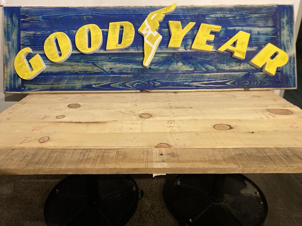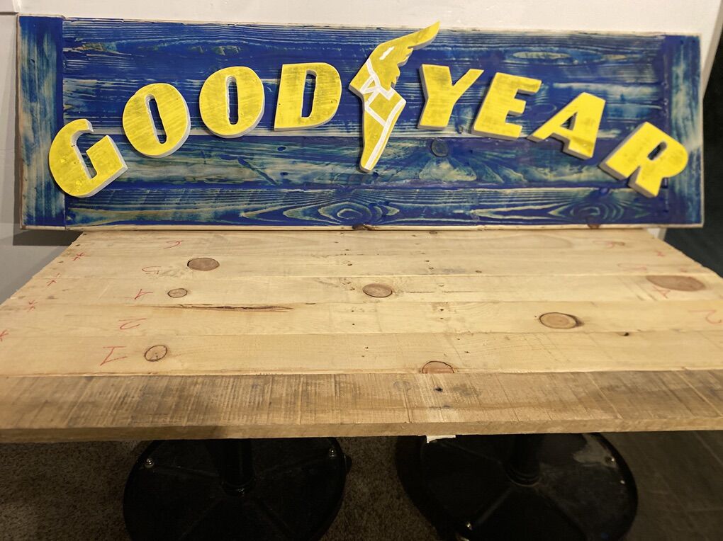 GOOD YEAR CUSTOM LOGO ALL CUT AND PAINTED BY HAND sanded, and clear put it for protection.. 14x47 inches