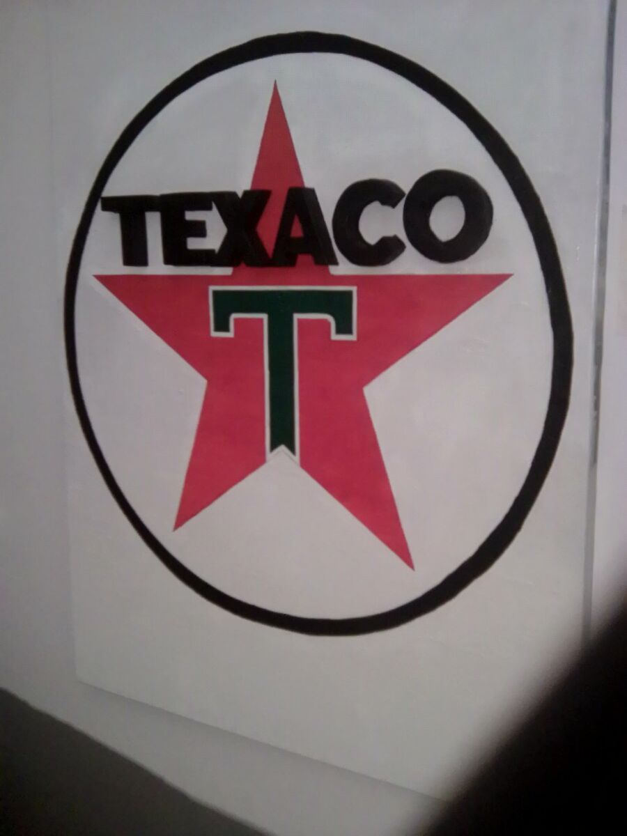 Old school, Texaco logo gasoline, sign hand painted and clear coated for protection wood integrated on the Texaco font .30x40