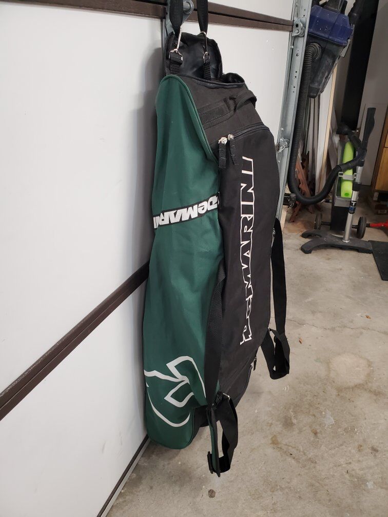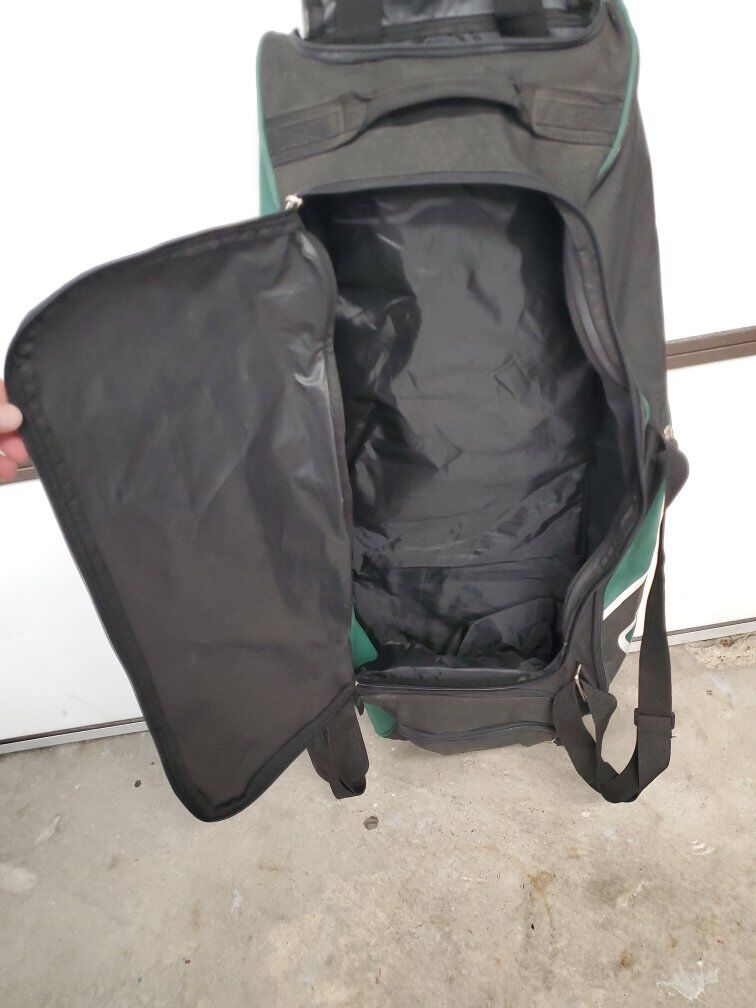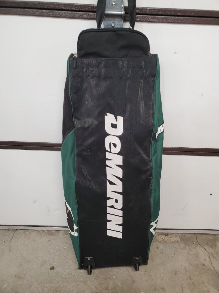 VenmoThis Demarini wheeled drag bag is lightweight and simple, but it does have an insulated bottle pocket. The main pocket opens nice and wide for easy loading and unloading of gear. Great for catchers gear. It can hold multiple bats in the deep back pocket.