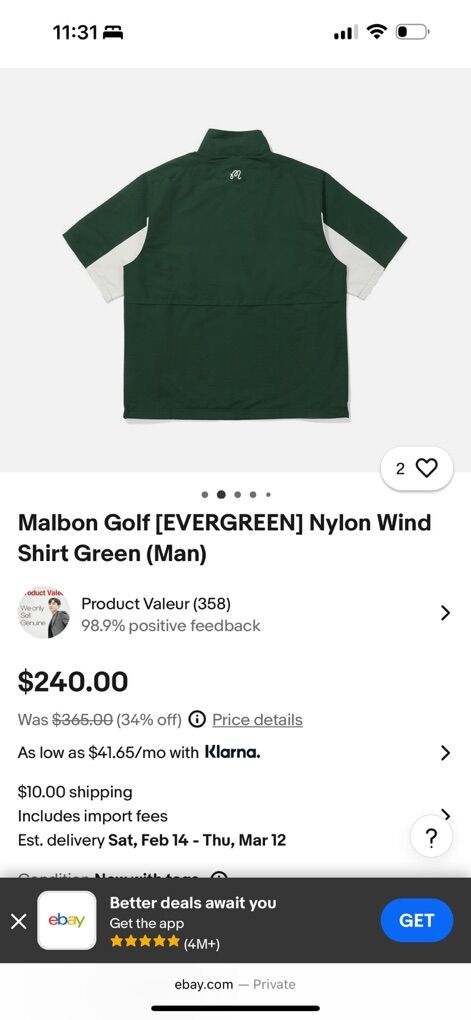 ApplePayMalbon golf nylon wind shirt 2 XL fits more like a XL going for $240 on eBay selling for $180 obo