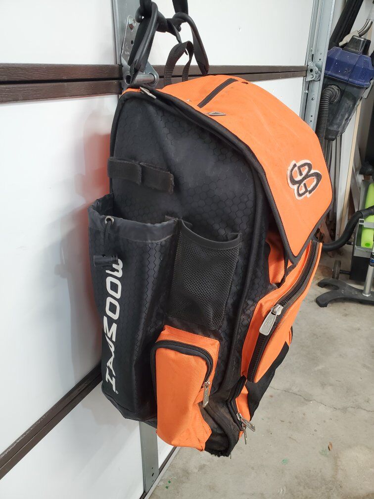 VenmoBoombah Superpack rolling bat bag. This version is wheeled/drag only, it doesn't have backpack straps. It can hold 4 bats. Bag is in good shape, no holes or anything.