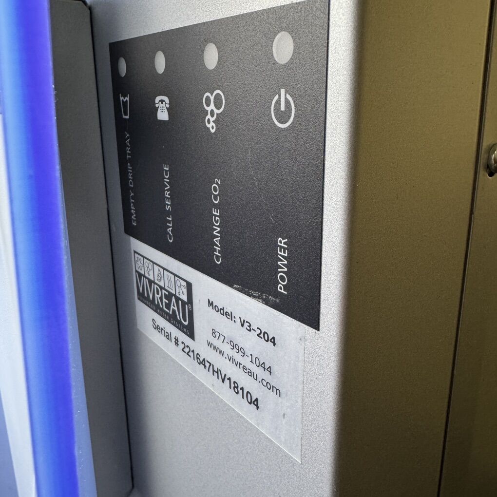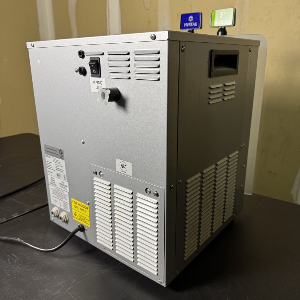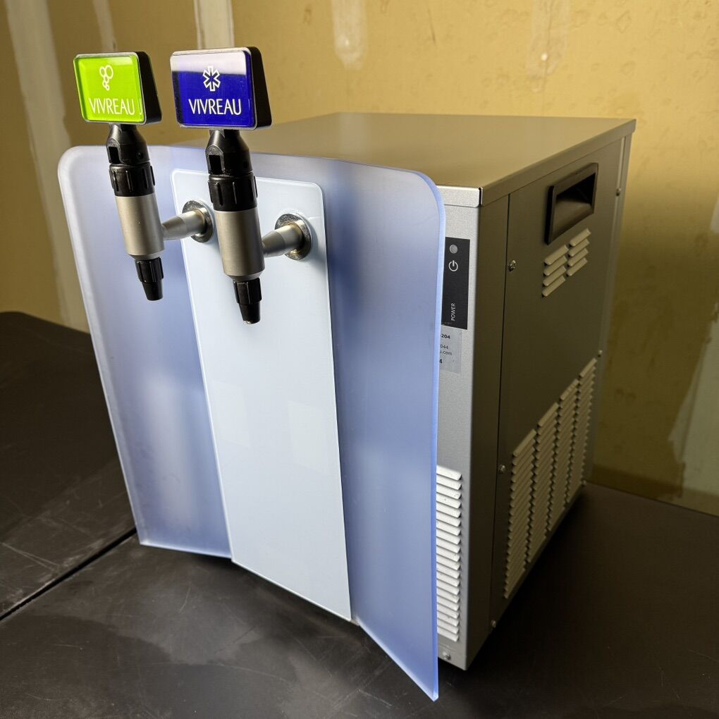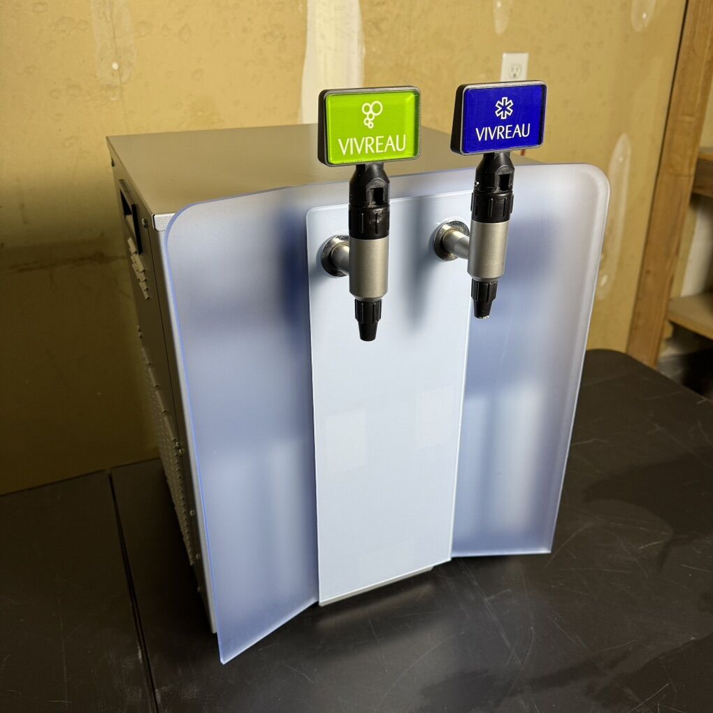 The Vivreau V3-204 (1025648) Vivreau Water Bottling System Mini Bottler Dual Tap is a sophisticated countertop unit designed for efficient water dispensing. Equipped with a self-contained ice-bank refrigeration system, this mini bottler provides both chilled still and sparkling water, ensuring a refreshing experience. The unit incorporates micro-filtration technology, delivering high-quality purified water suitable for various settings. It comes with a dual tap mechanism, allowing users to conveniently select between still and sparkling options. The system includes a filter with a filter head, enhancing the water's purity. For carbonation, it supports a 20 lb. CO2 cylinder, provided by the customer, and features an integrated CO2 regulator to maintain optimal pressure levels. Constructed with a durable stainless steel drip tray and removable nozzles, it is easy to clean and maintain. Operating at 120v/60/1-ph, the system requires an 8.0 amp connection and is compatible with a NEMA 5-15P outlet. Certified by ETL and NSF for indoor use, the Vivreau V3-204 is a reliable choice for hotels, restaurants, and corporate settings, offering consistent performance with its robust design and advanced features.
