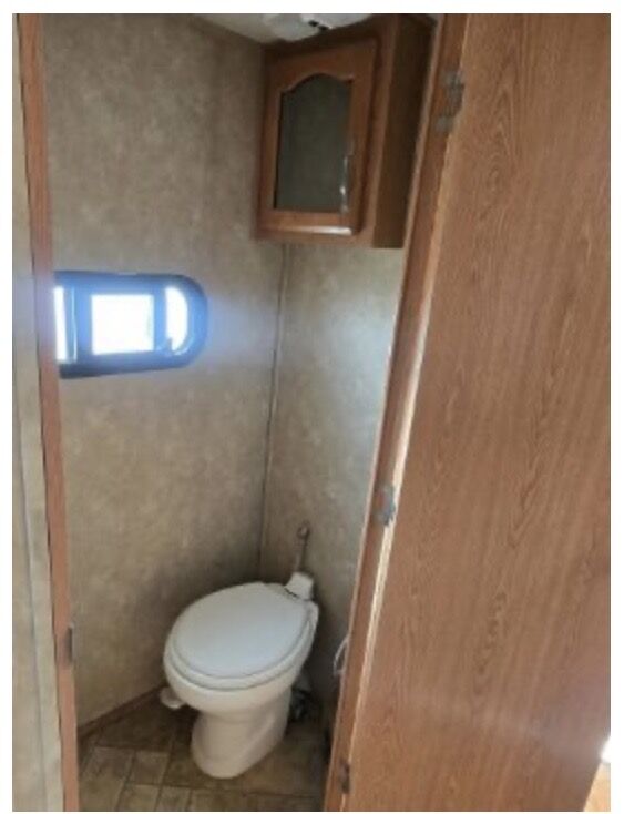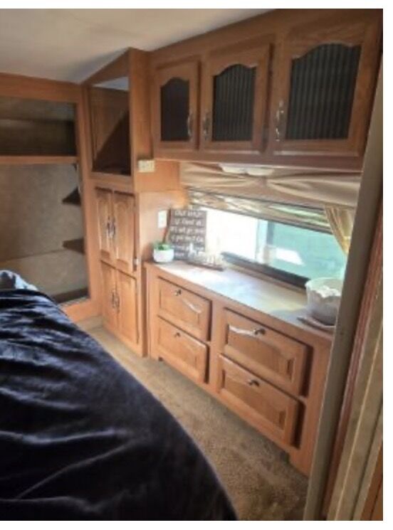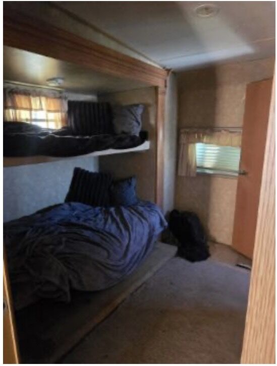 This trailer has TWO private bedrooms and TWO bathrooms! One bedroom with a queen bed, the other with bunk beds, perfect for kids.