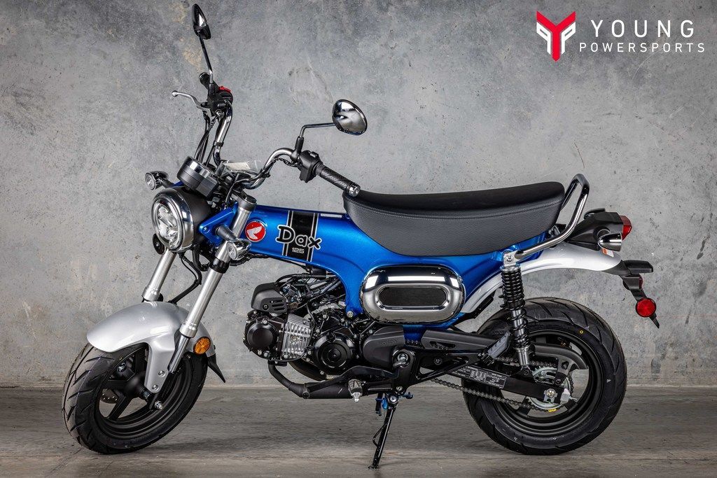$300 OFF MSRP!!! HURRY INTO SAVE BIG ON YOUR NEXT HONDA DAX!!! 2025 Honda® Dax 125Off-the-leash funIn the 1970s', the Dax (aka the CT70/Trail 70) was one of our most popular models. And now it’s back, and more fun than ever. That’s thanks to its bigger engine (the same family as in our Grom, Monkey, and Trail125), fuel injection, disc brakes, and electric starting. And with room for two, you can share the fun!Features may include:Upswept exhaustThe high exhaust system pays homage to the original trailbike roots, but is super practical too and contributes to the wide powerband.Round LED headlightThe round headlight may have a retro look, but it provides excellent visibility and illumination with its updated LED performance.Twin rear shocksTwin rear shocks keep the retro vibe strong. Along with the fat 12-inch tires, they give you a smooth ride too, even over gnarly pavement.