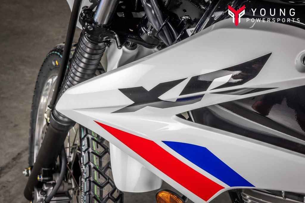 2025 Honda® XR150LDual purpose. All adventure.Affordable yet packed with features, the XR150L is ready for any terrain — from city streets to rugged trails — and now comes in White or Gray colorways with updated graphics for a fresh new look. Built for riders of all skill levels, it delivers premium performance with Honda’s unmatched reliability, all without breaking the bank.Features may include:Electric starterThe electric starter makes it easier to start on a cold morning or restart it when off-road.Pro-Link® rear suspensionHonda Pro-Link® rear suspension system ensures a comfortable ride with maximum wheel control. Soft initial rates absorb small bumps, while stiffer rates resist bottoming over rougher surfaces.XR650L-inspired stylingOur XR650L is known for its legendary status in the dual-sport world, and in terms of style, this bike is nearly its twin – the white version especially.