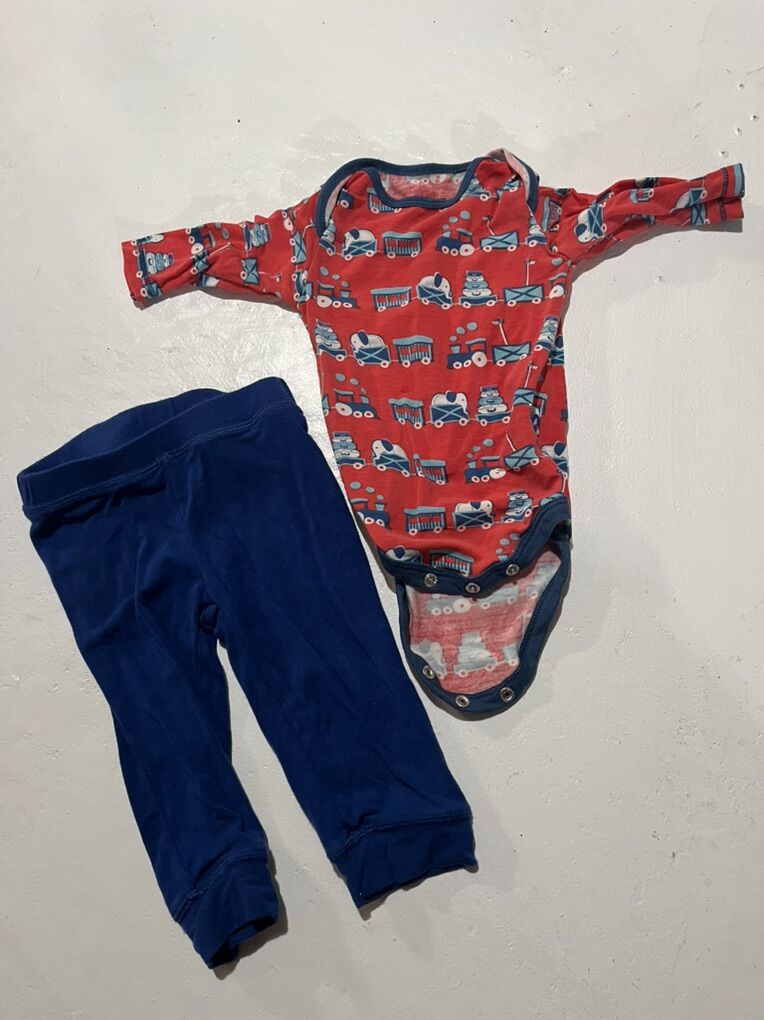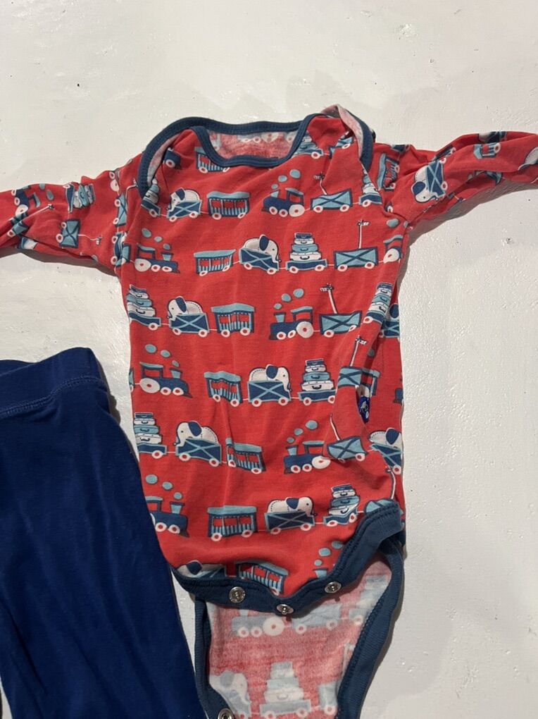 Vintage styled train baby outfit kickee pants set 3-6 month old