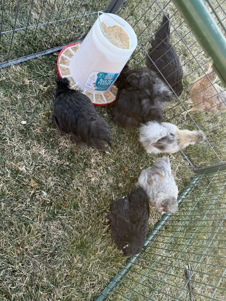 I have a few different age groups of silkies available! age ranges from 8 weeks to about 18 weeks colors include: ~frizzle cuckoo ~blue ~black ~grey satin and a few other colors! satin, frizzle and silkie feather type available! All sold as straight run! not all silkies in the first picture are available! $10 each