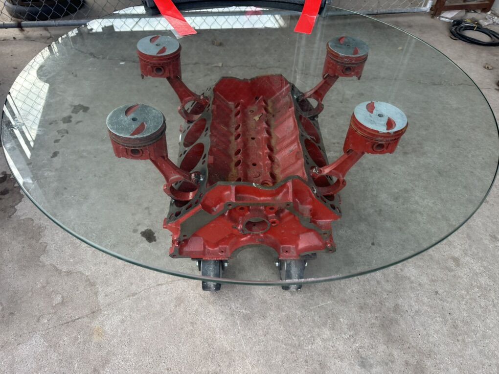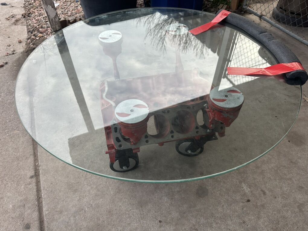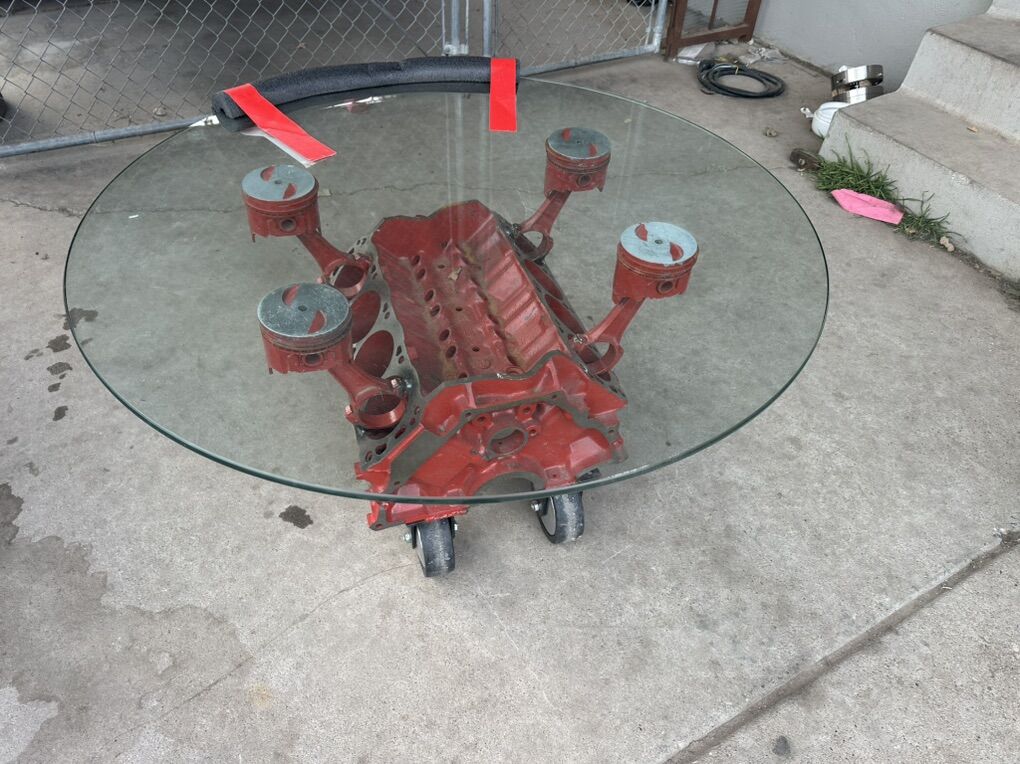Coffee table engine sturdy glass great for man cave $500 firm thanks