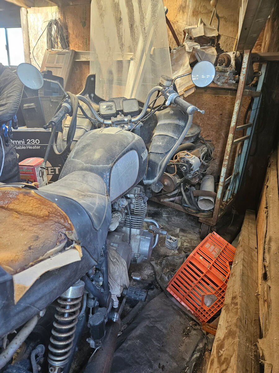 Full dress, back luggage rack. Worked when parked. Stored in barn for 20 years. Needs new seat.