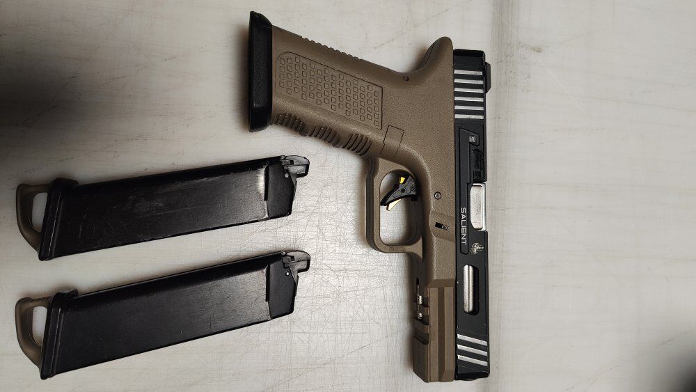 Custom Echo1 Timberwolf Glock with a Salient Slide and trigger, maple leaf bucking and barrel. Compatible with TM spec parts. Comes with 2 mags with quick grip attachments. asking $300
