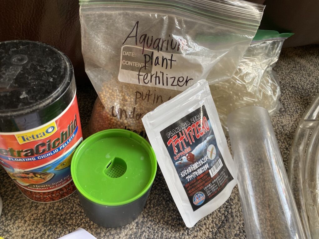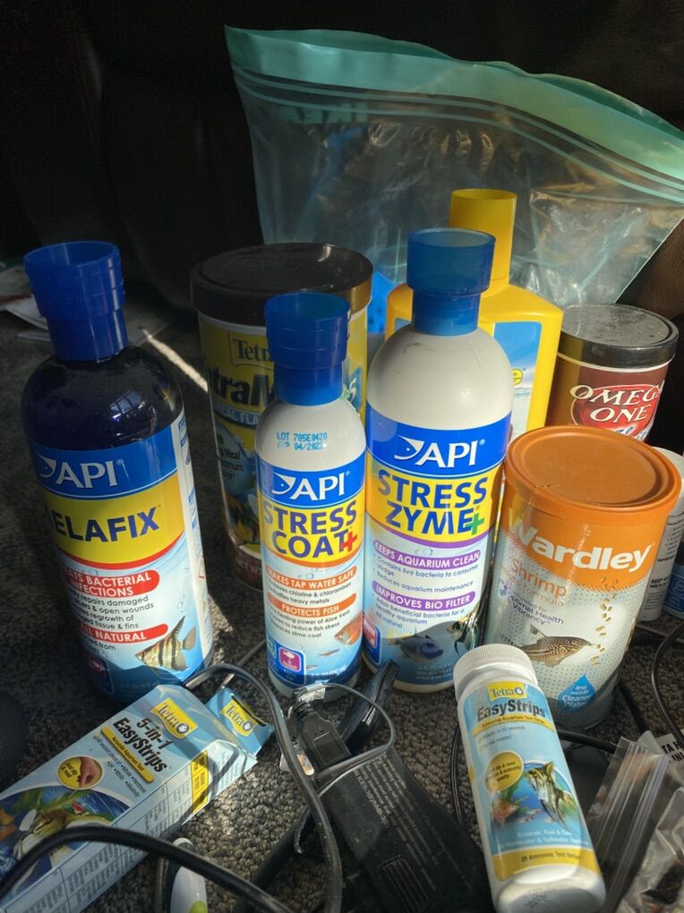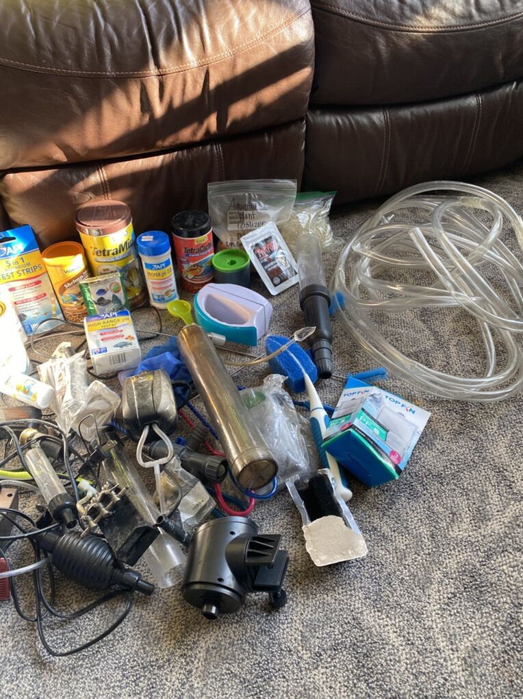 ZelleGetting out of the hobby and downsizing all of my remaining fish tank / fish aquarium items. There’s food, tubing, decor, stress coat, stress zyme, melafix, water treatment, filters, expensive plant fertilizer, cleaners, nets, scrubbers, gravel cleaner, ph test kits, etc. most of the food and liquids are still near full.