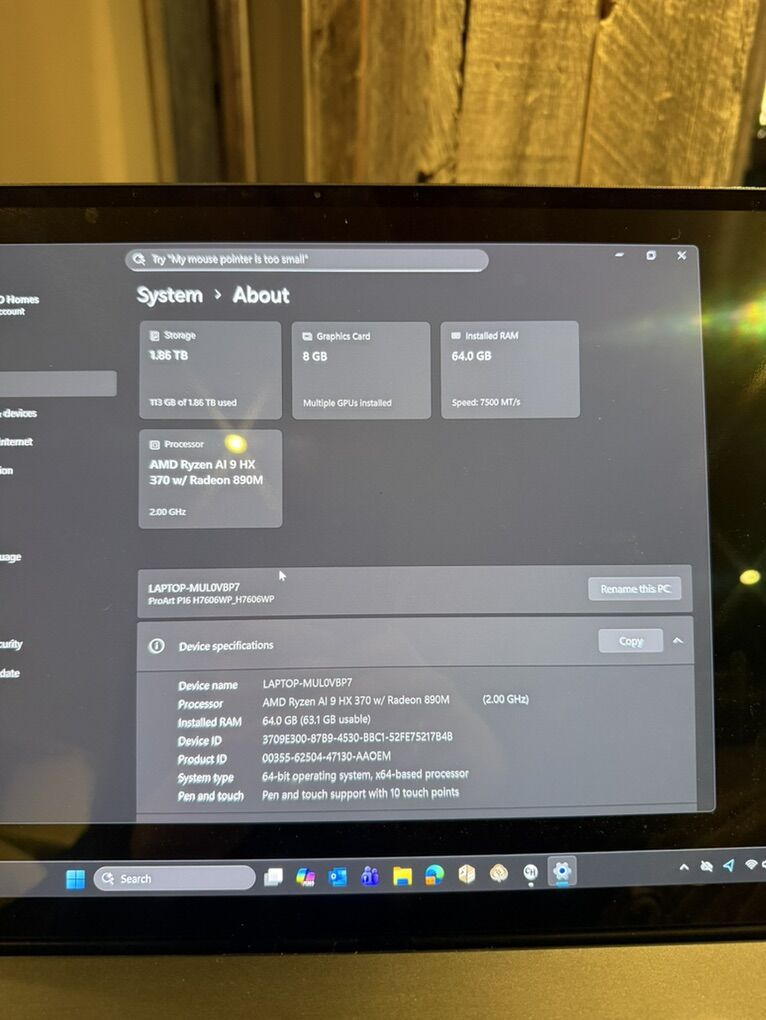 VenmoASUS ProArt P16 Creator Laptop — Ryzen AI 9 HX • 64GB RAM • 2TB SSD • RTX Graphics • Excellent Condition. Only opened for initial setup a week ago and then wasn’t used again. Battery is in perfect condition, comes with original charger.