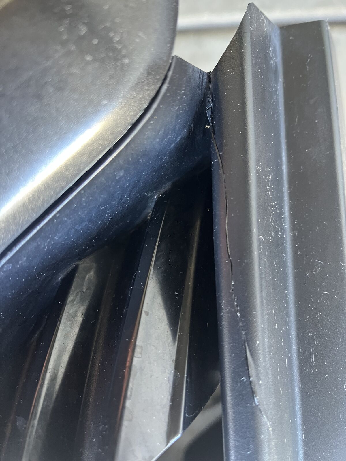 There is a small crack at the top (as shown in photo). It can't be seen when the hood is closed and does not impact the grille at all.