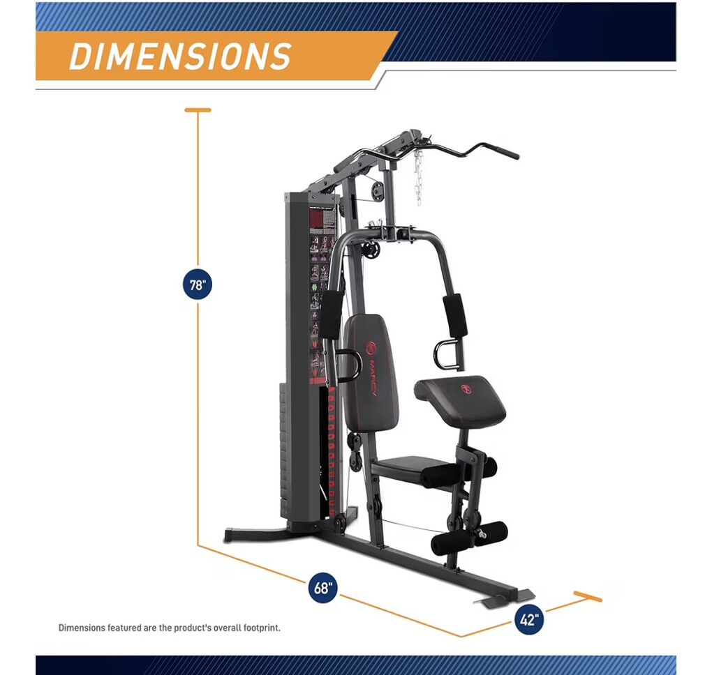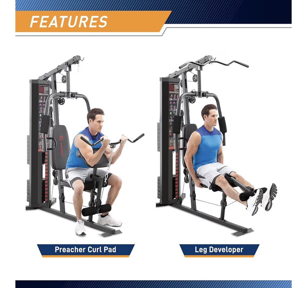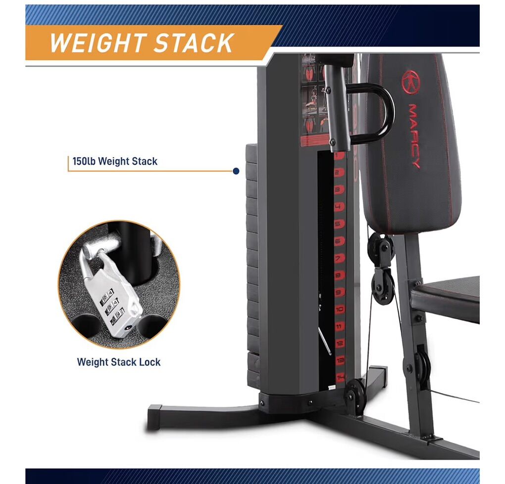 Amazon Description: PREMIUM STEEL CONSTRUCTION – This home gym system is made with heavy-duty steel tubing and reinforced with guard rods that hold weight in place during workouts. WEIGHT STACK LOCK – This gear comes with a 150-pound selectorized weight stack that can be customized according to your skill level to avoid the stresses of loading and unloading weight plates with a safety lock that prevents unauthorized use of equipment DUAL ACTION PRESS ARMS-Designed with dual action press arms, this versatile equipment allows you to perform chest press and vertical butterfly exercises to develop your biceps, triceps, pectorals, and other muscles with a simple remove/insertion of a pin REMOVEABLE CURL PAD – This home gym machine features ergonomically designed seats with high-density boxed upholstery to reduce tension and impact. The preacher curl bicep pad is removable and adjustable to allow isolated bicep exercises. CONVENIENT HOME GYM- enjoy efficient training right in the comfort of home with this equipment featuring an innovative structure that combines arm and leg stations; great for strengthening muscle groups and achieving a comprehensive total-body workout.