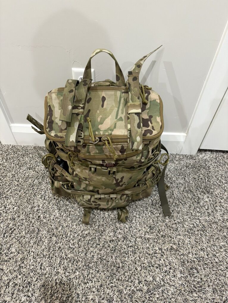 ApplePayHPG Umlindi v2 in multicam, recon belt in ranger green size medium and two Nalgene quart canteens. This pack is in its original form (no cuts) and was only used for one season of hunting. It is in excellent condition.