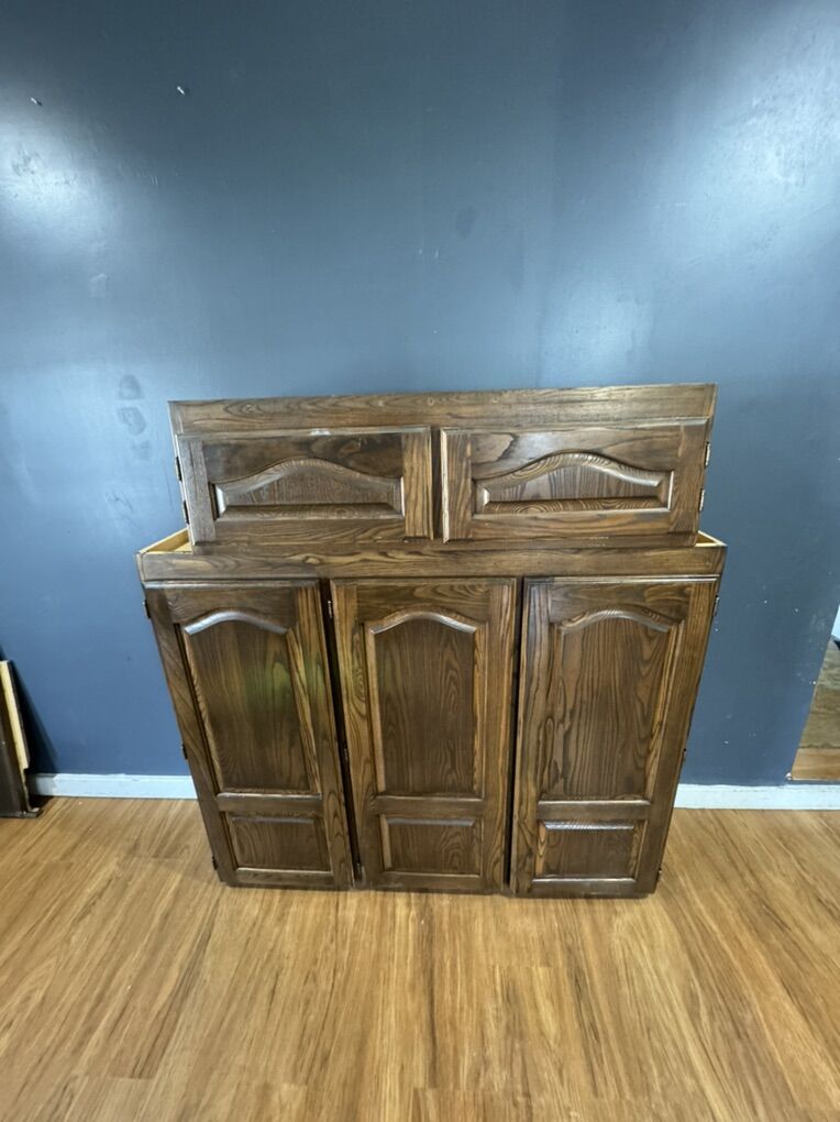 VenmoUpper kitchen cabinets. These are oak cabinets. Nothing wrong with them. They just don’t fit our space. Measurements in pictures. Asking $100 thanks!