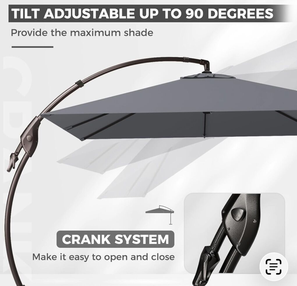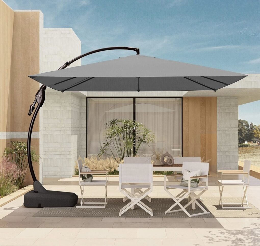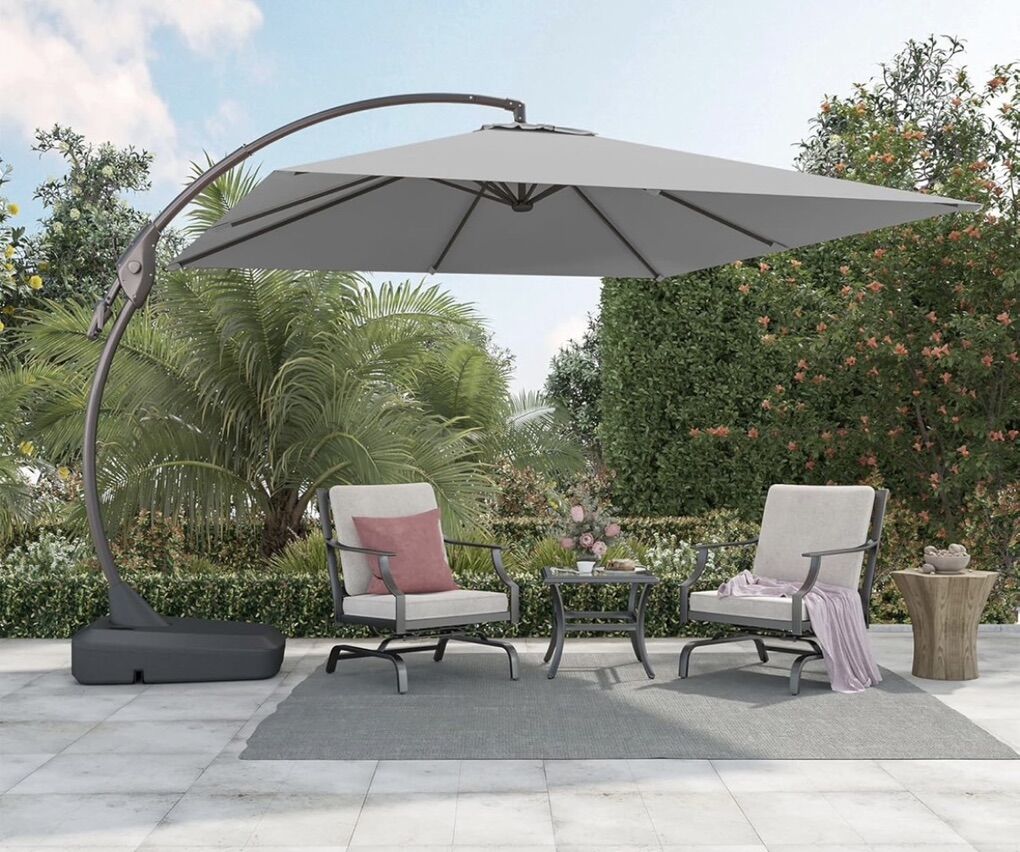 Grand patio 10X10 FT Sunbrella Offset Umbrella with Base Outdoor Square Aluminum Cantilever Umbrella Shade with Easy Tilt Adjustment (Charcoal, 10X10 FT-SUNBRELLA)