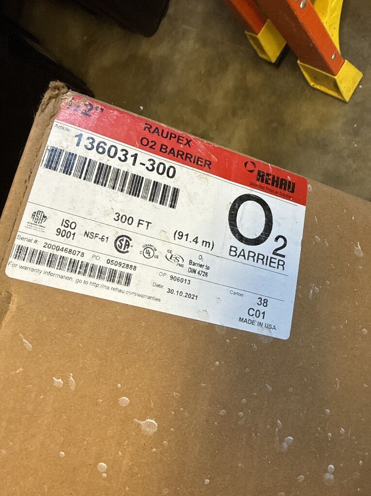 Rehau, 136031-300, 1/2 in. RAUPEX O2 Barrier Pipe, 300 ft coil (5 boxes 300 ft each)
