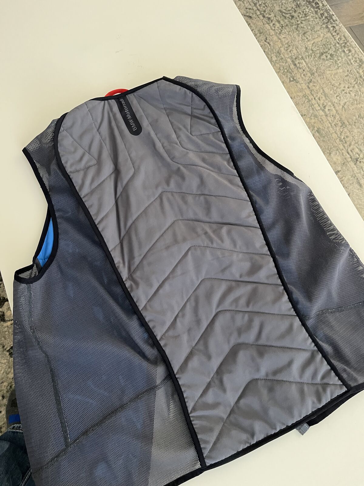 When the vest is wet or damp, the material on the front and back locks in the moisture and stores it for up to eight hours. This provides a cooling effect of 6°C to 12°C compared to the outside temperature.