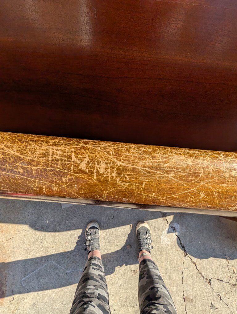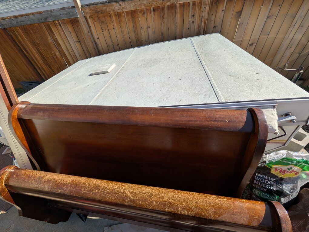 VenmoGot it for my son, but he changed his mind. Comes with headboard, footboard, side rails, and some slats. Solid wood. Footboard has a bunch of scratches. My plan was to sand it down and re-stain it if he was going to keep it, but it needs to go to a new home.