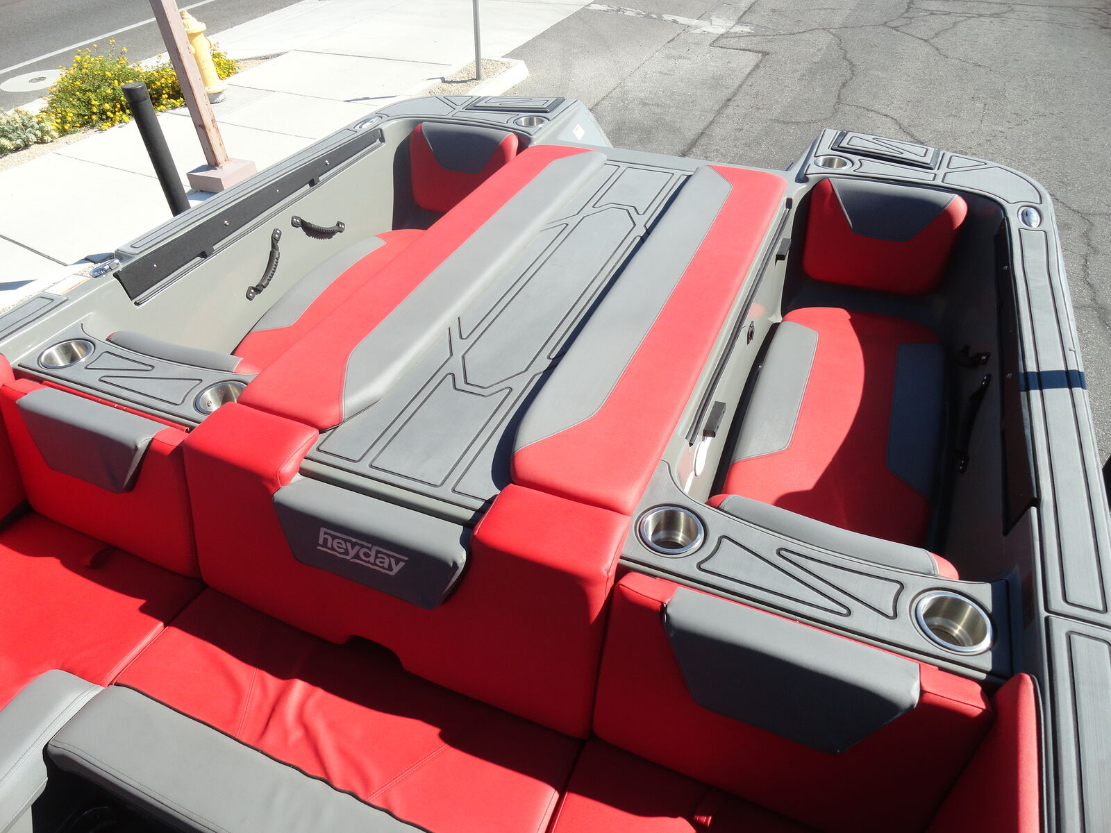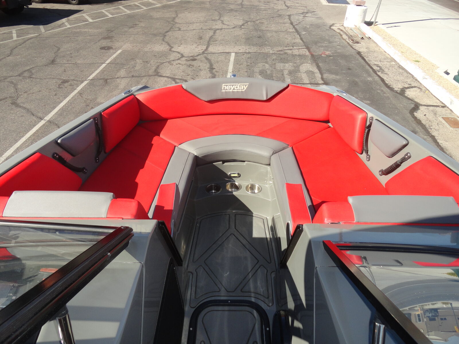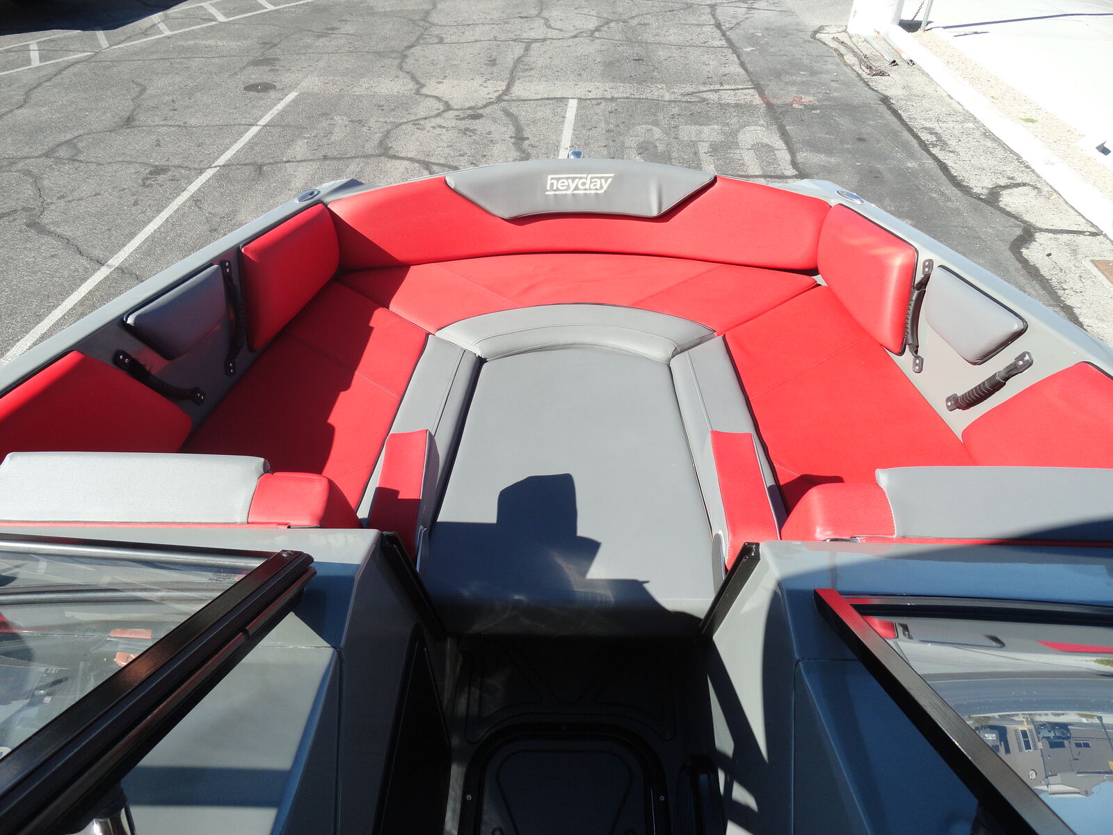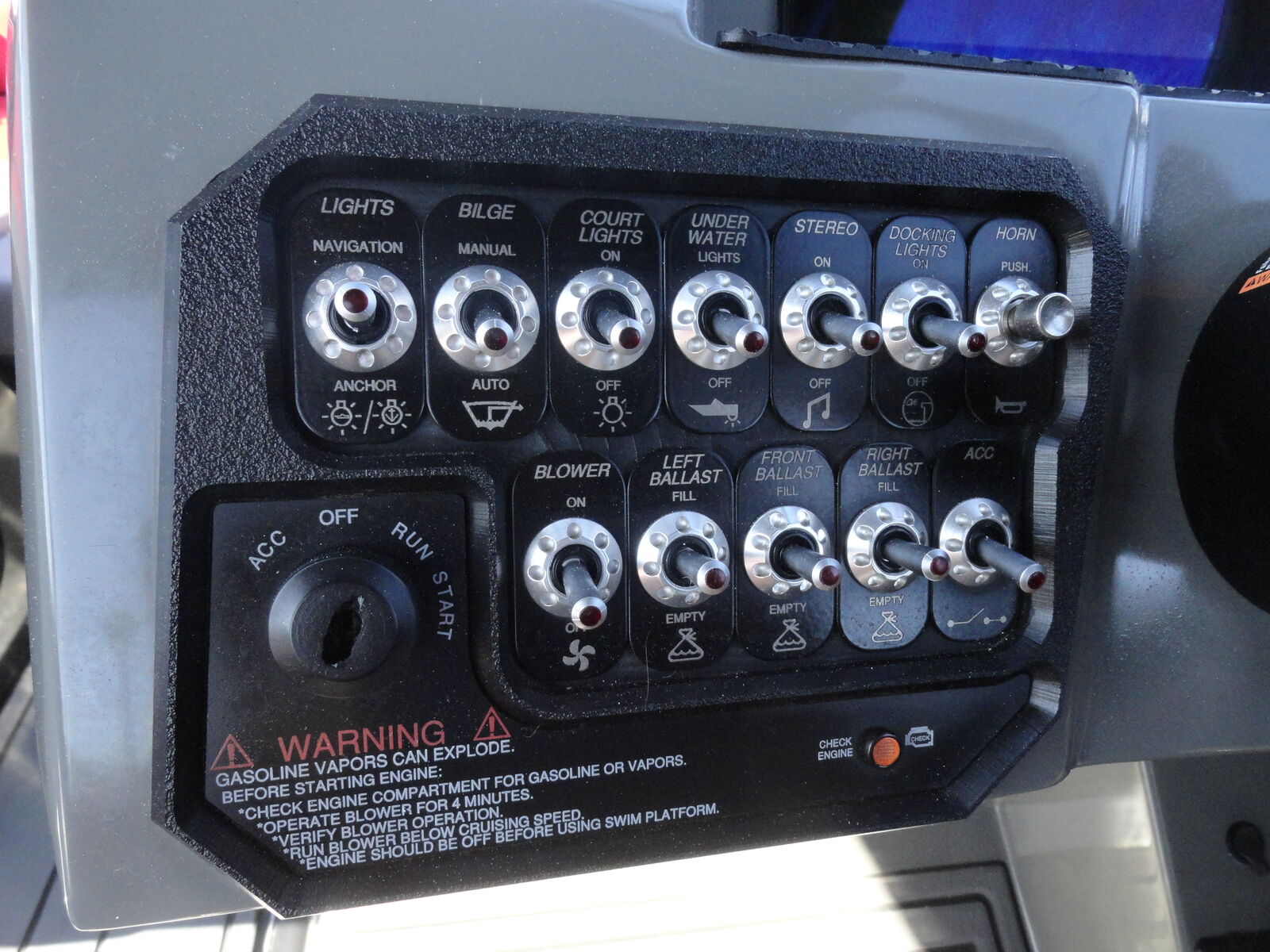 Featuring: Mercruiser 6200 H.O. with 370 HP, wakeboard tower w/speakers, swiveling board racks, bimini top, mirror, full instrumentation, Mercury Vessel View with touchscreen, cruise, tilt steering, flip-up bolster driver's seat, docking lights, Rockford Fosgate stereo, glove box, wind dam, filler bow cushion, Hot Tub seats with sundeck cushions, soft grip flooring, cup holders, endless storage, dual batteries w/switch, battery charger, underwater lights, full boat cover, and a tandem axle trailer w/matching spare and folding tongue.