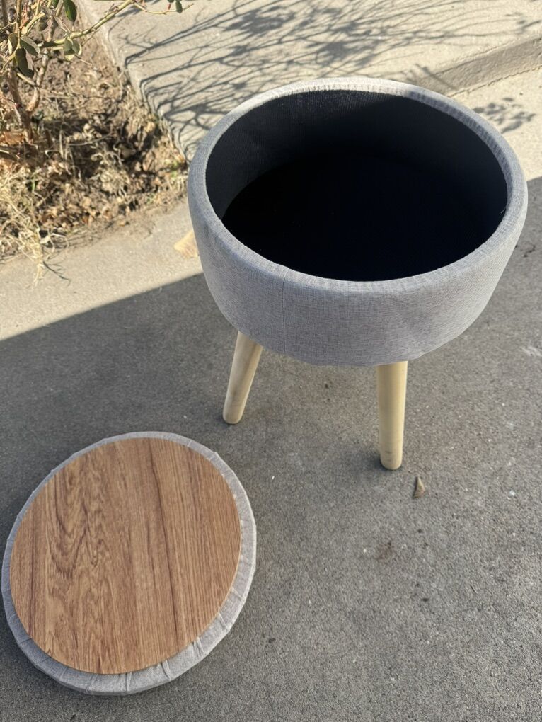 Little stool that also has a small compartment for storage.